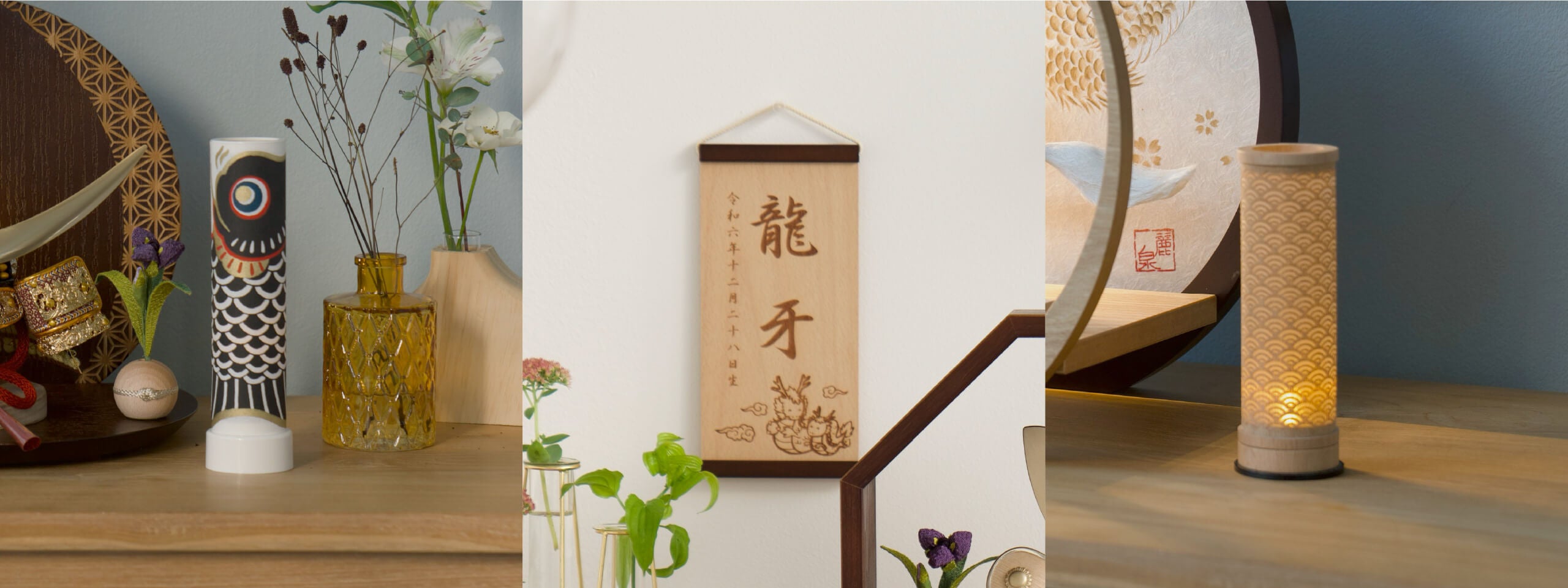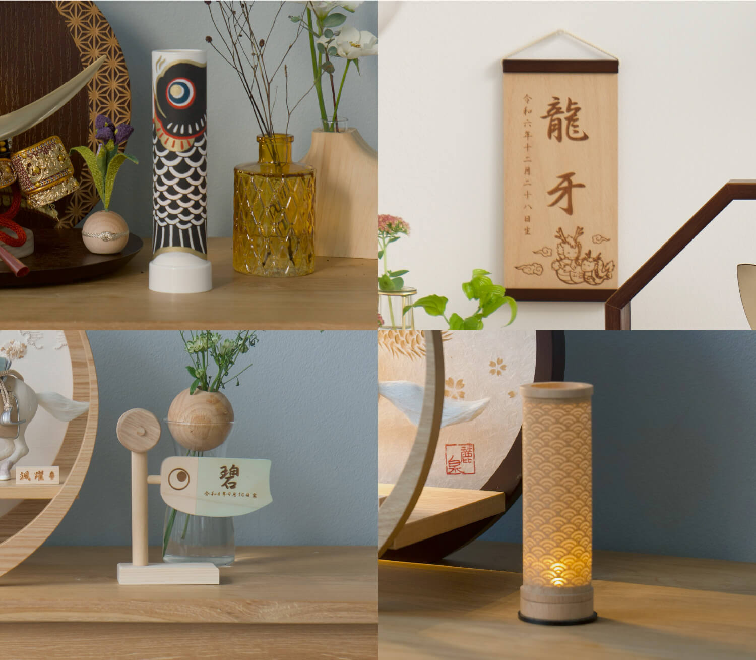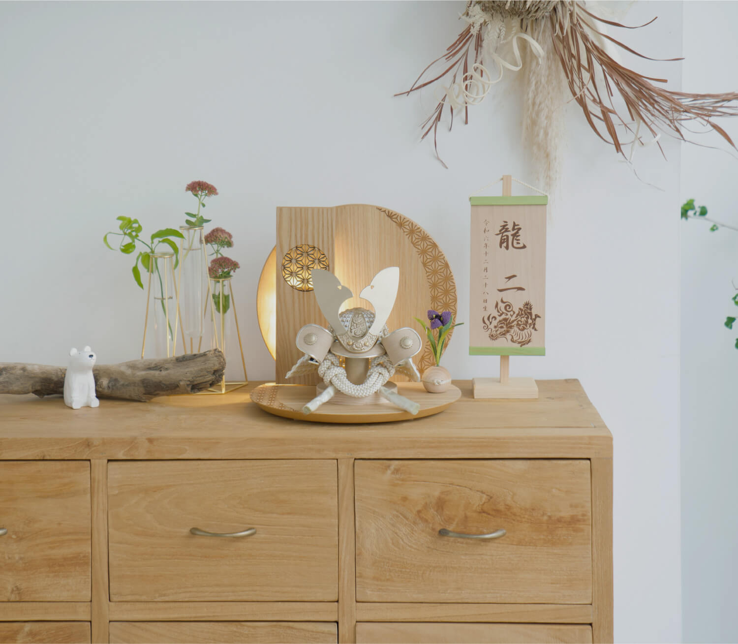 木都の節句飾りはこだわりの木材から生み出されます。木の質感や木目が感じられる木製ケースや収納箱、積み木のように遊べる木製の鯉のぼりや雛人形など、全ての商品に「国産の天然木」を使用しています。 木ならではの肌触りの良さや温かみぬくもりを感じてほしいから、厳選した木材を使用しています。