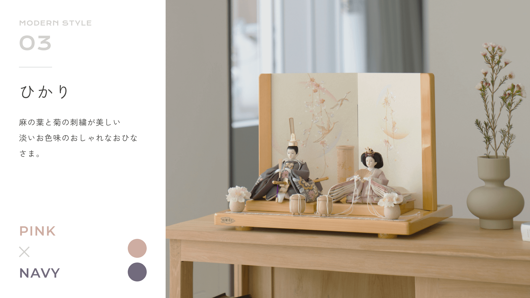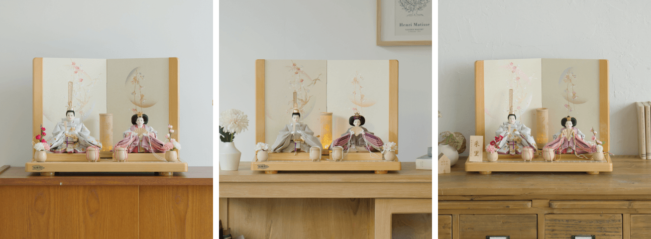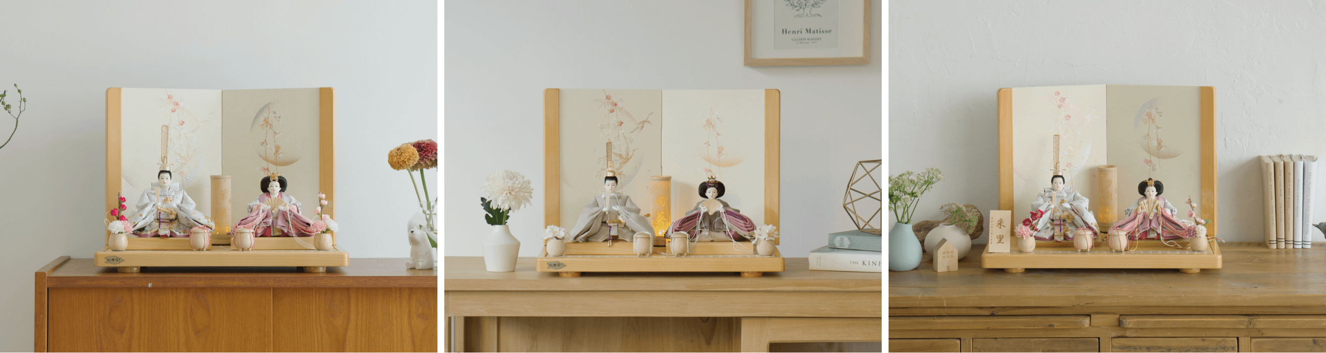 木都のおひなさまは、現代の暮らしに寄り添いながらも、伝統の美しさを受け継ぐ「和モダン」スタイル。