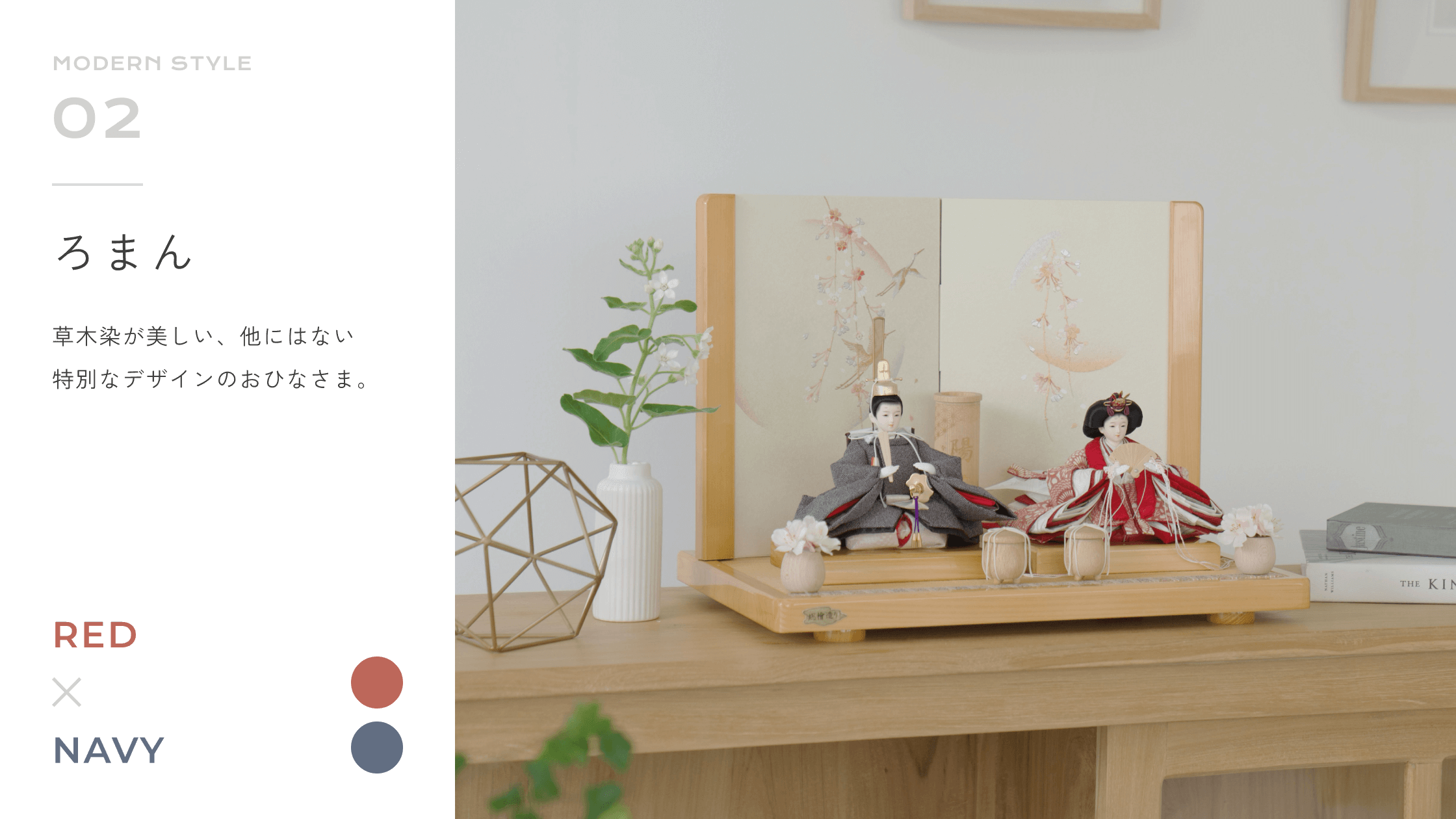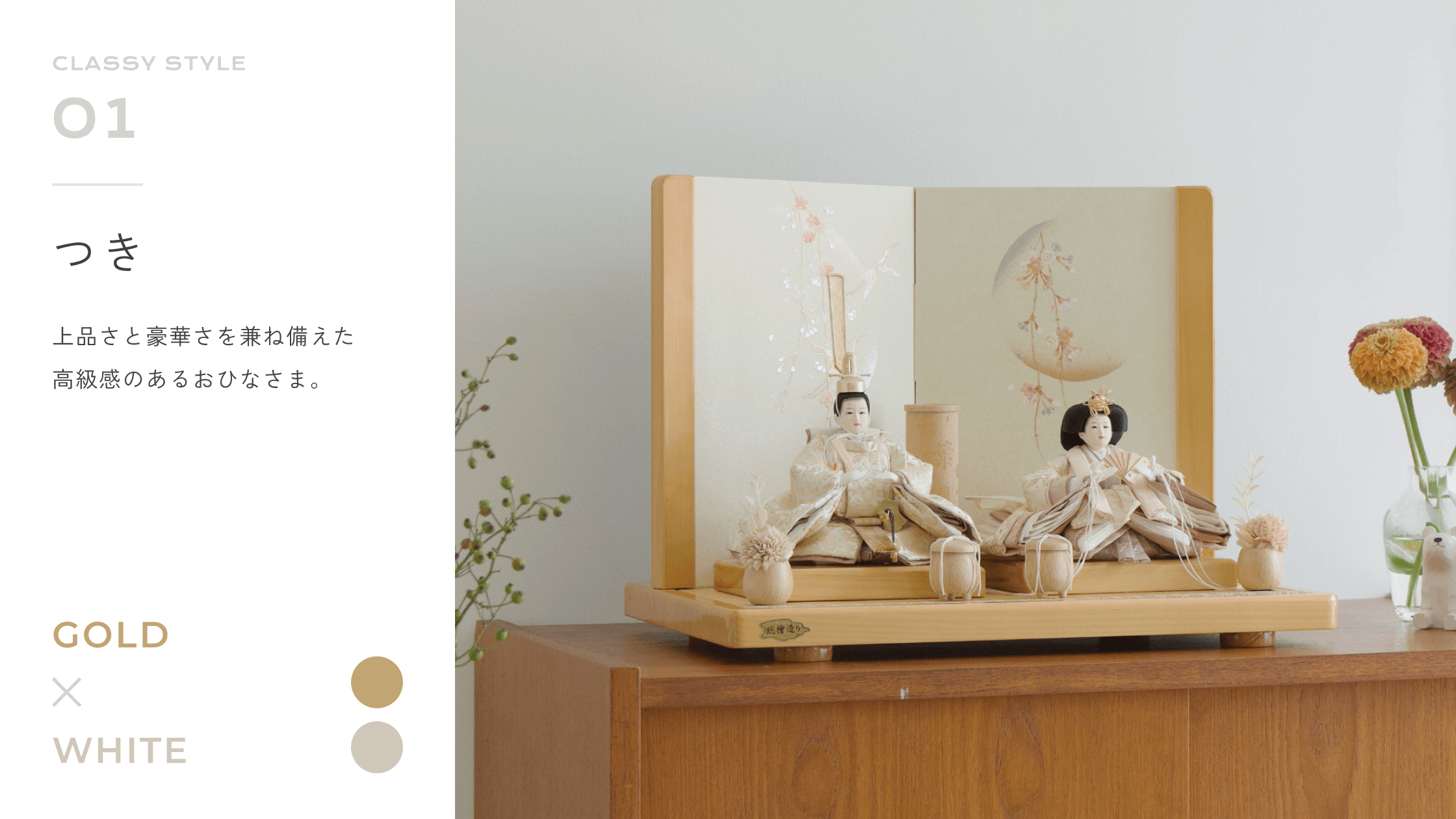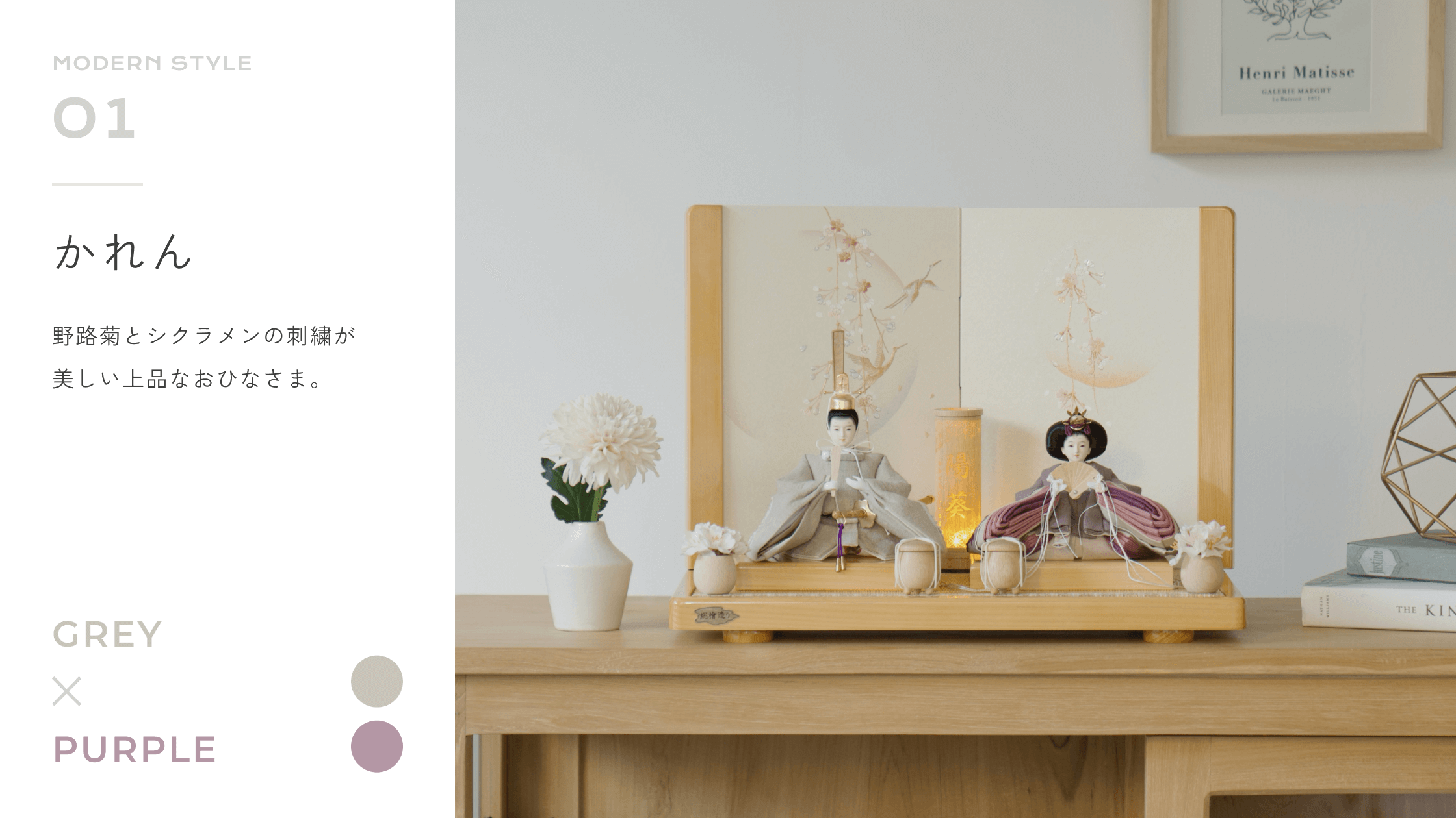 木都のおひなさまは、現代の暮らしに寄り添いながらも、伝統の美しさを受け継ぐ「和モダン」スタイル。