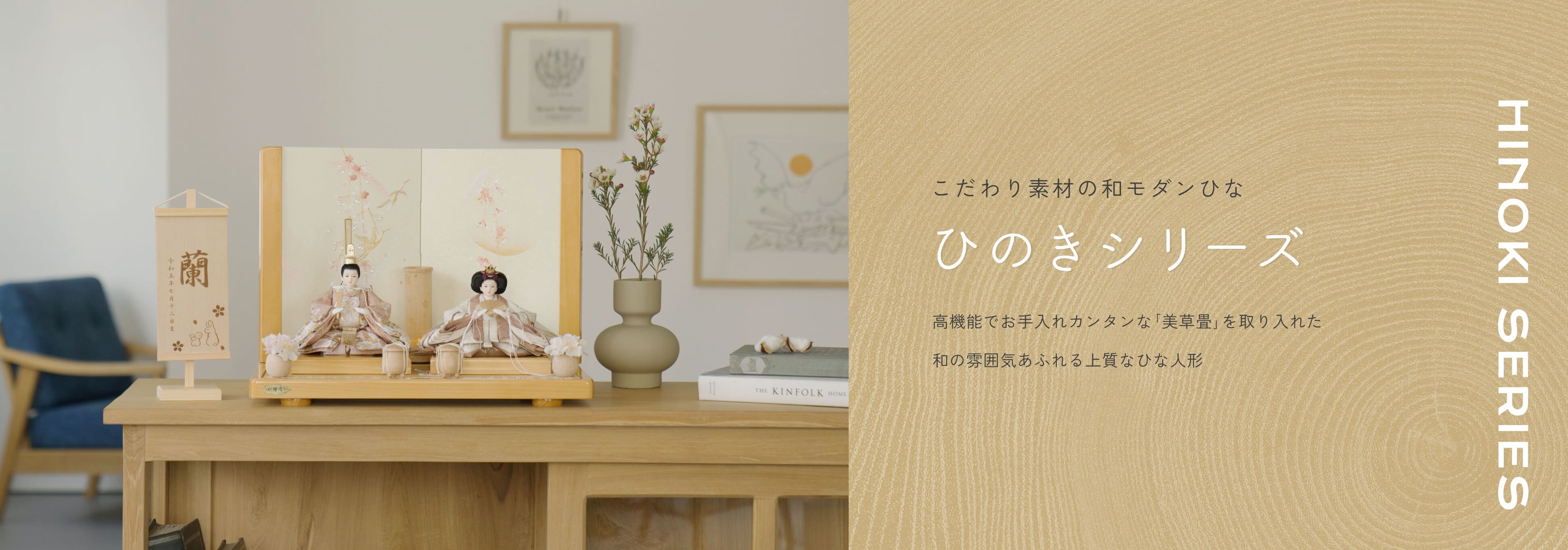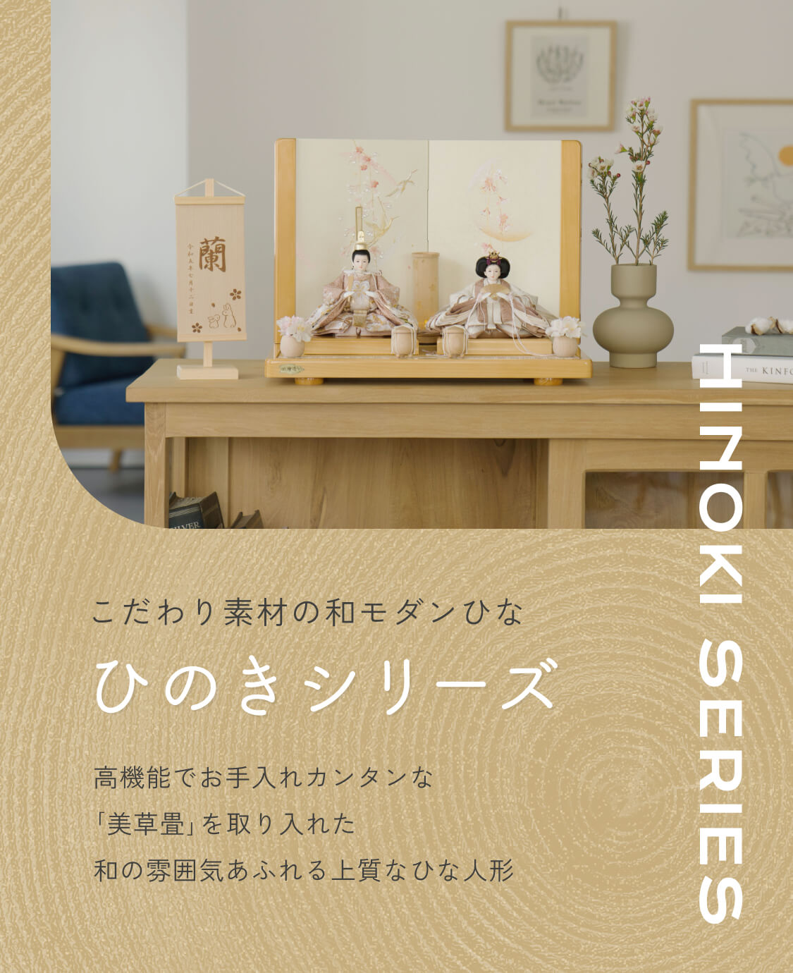 なかでも「ひのき平台」シリーズは、唯一「富士山麓の無垢のひのき材」を贅沢に使用した、特別なおひなさまです。