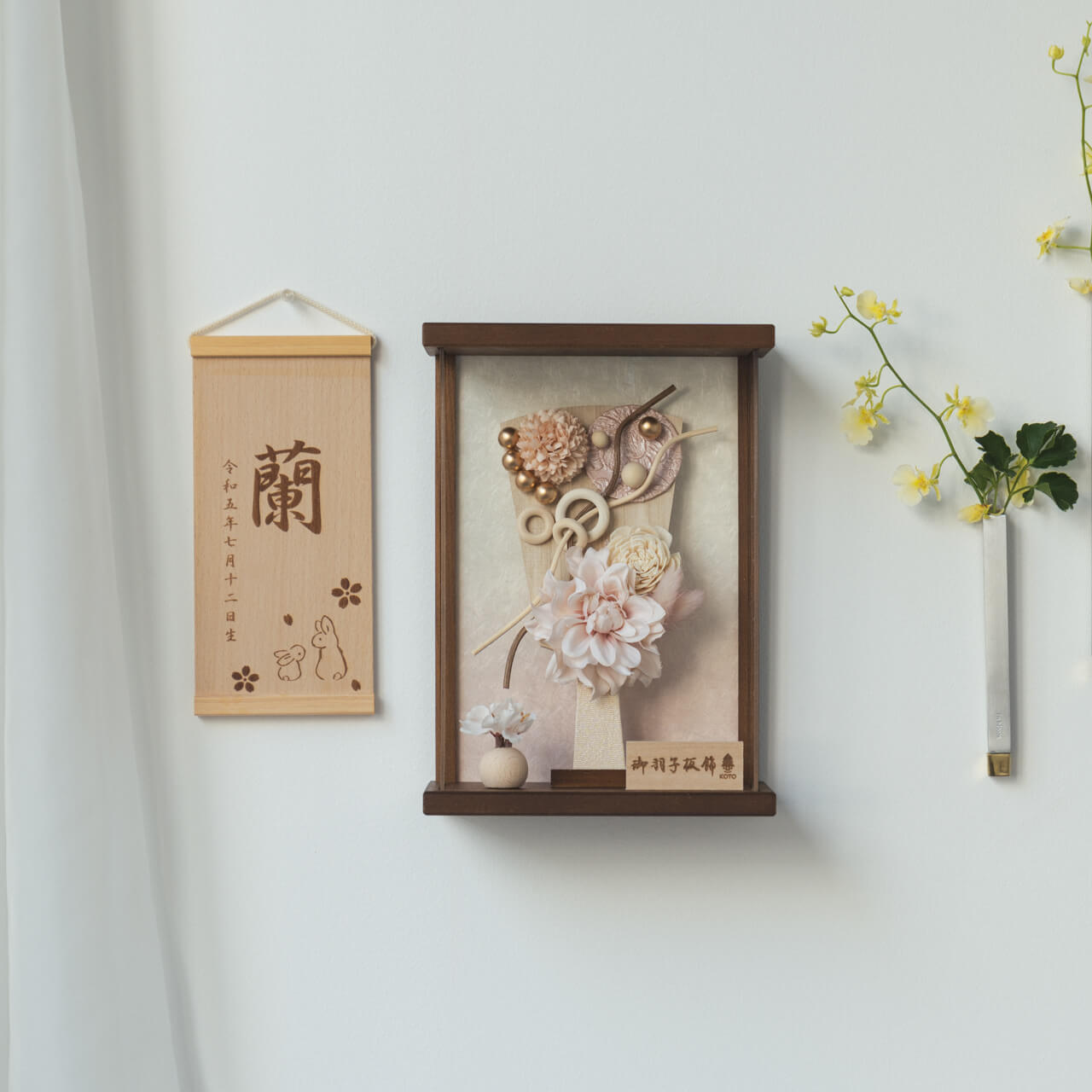 木都の羽子板は、親子で一緒に手で触れて・間近で見て本物の素材や質感を感じてほしいから、前面アクリル板を取り外して飾れるようにしました。