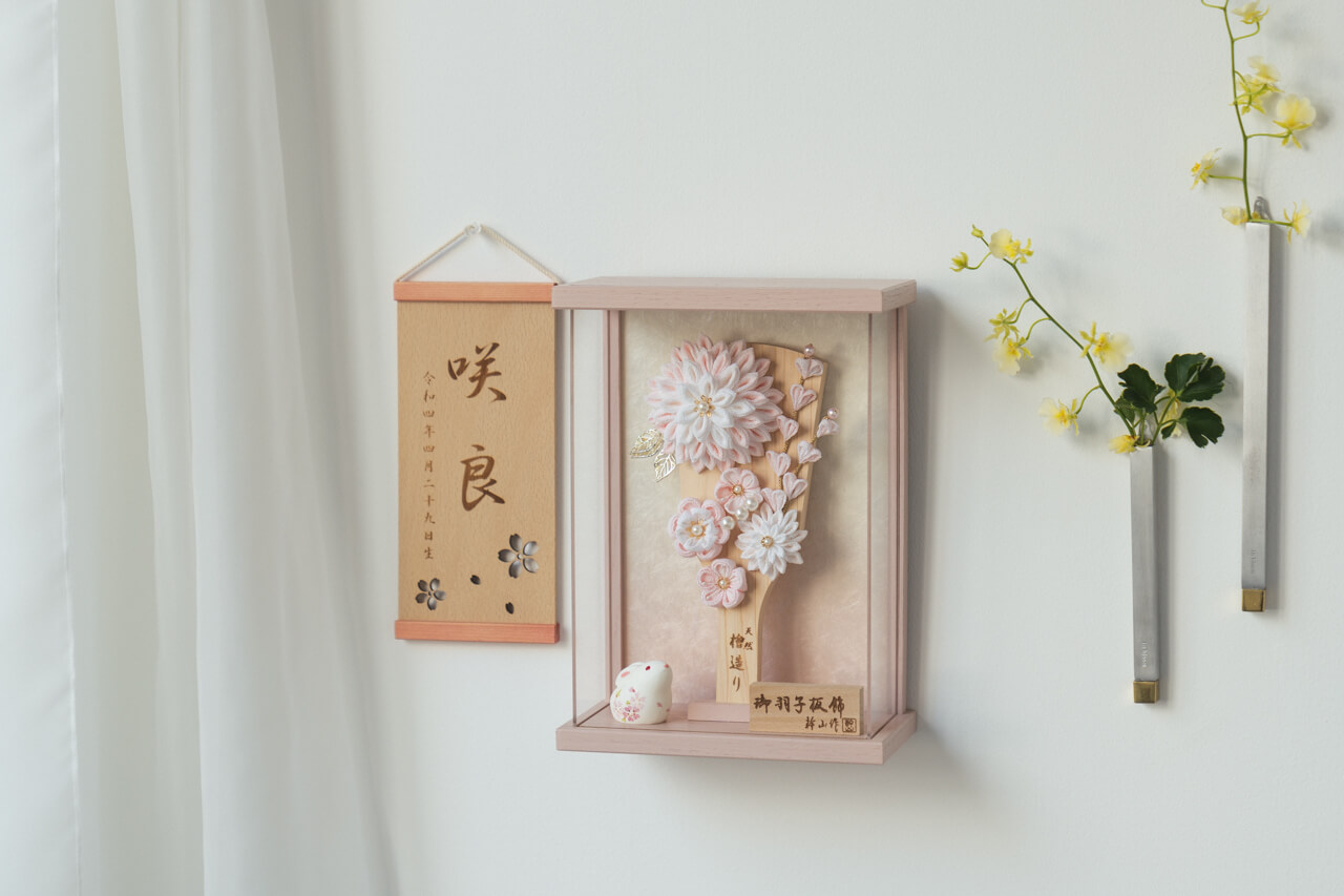 木都の羽子板は、親子で一緒に手で触れて・間近で見て本物の素材や質感を感じてほしいから、前面アクリル板を取り外して飾れるようにしました。