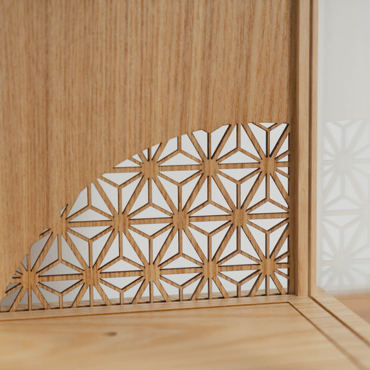 ケース背面の模様は麻の葉といいます。麻の丈夫さ・成長の早さにあやかり、子供の健やかな成長の願いが込められています。