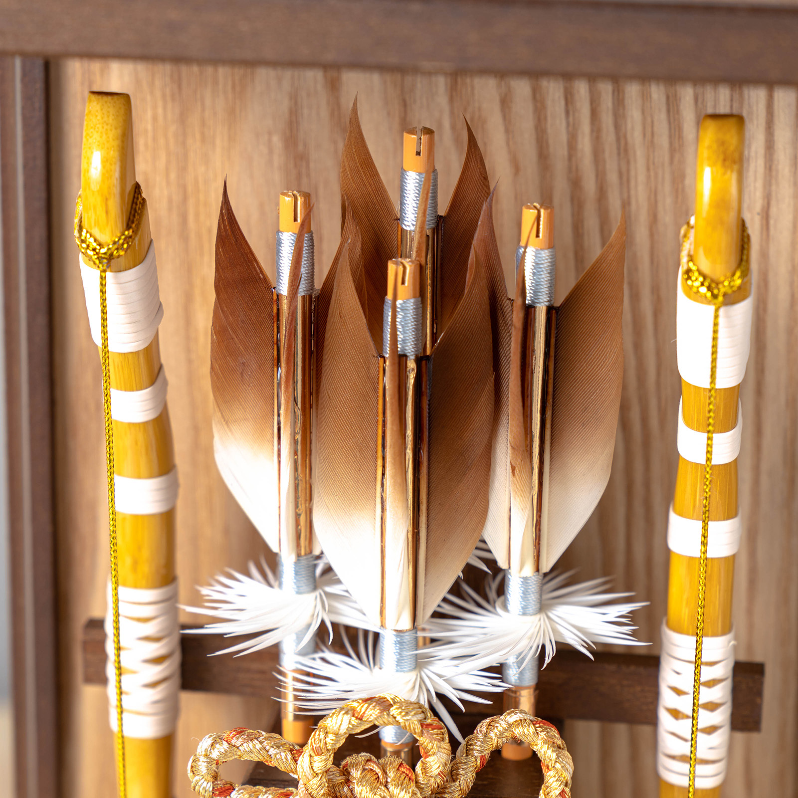 四本の矢は四神(東の青龍・西の白虎・南の朱雀・北の玄武)を表しており、東西南北からの厄災に備えるという意味が込められています。