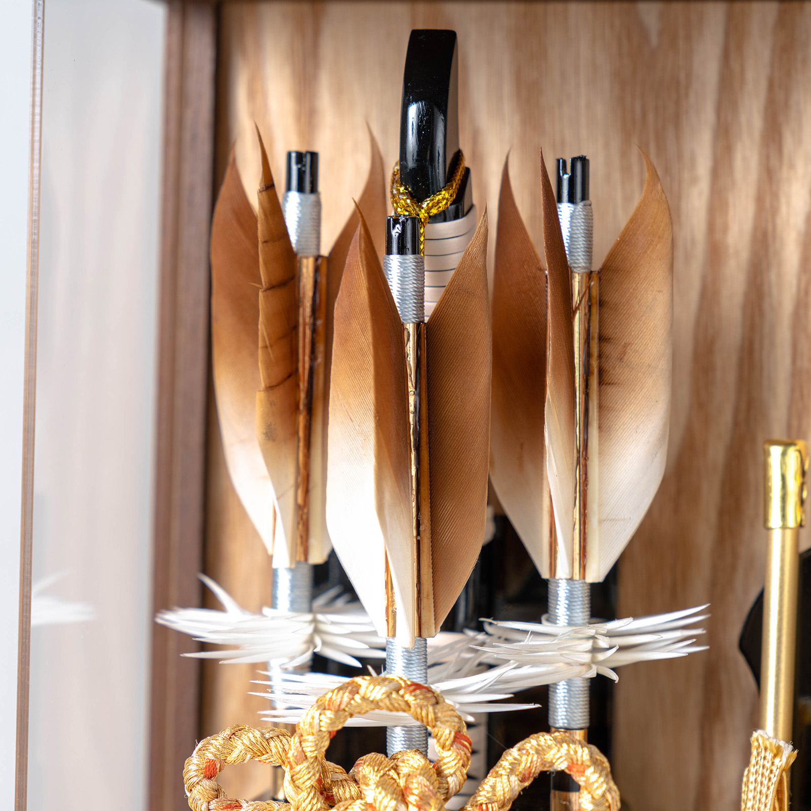 ことの破魔弓には伝統的な天然羽根が使用されています。天然羽根は軽くて、しなやかな素材のため古くから高価な伝統工芸品の素材として重宝されています。