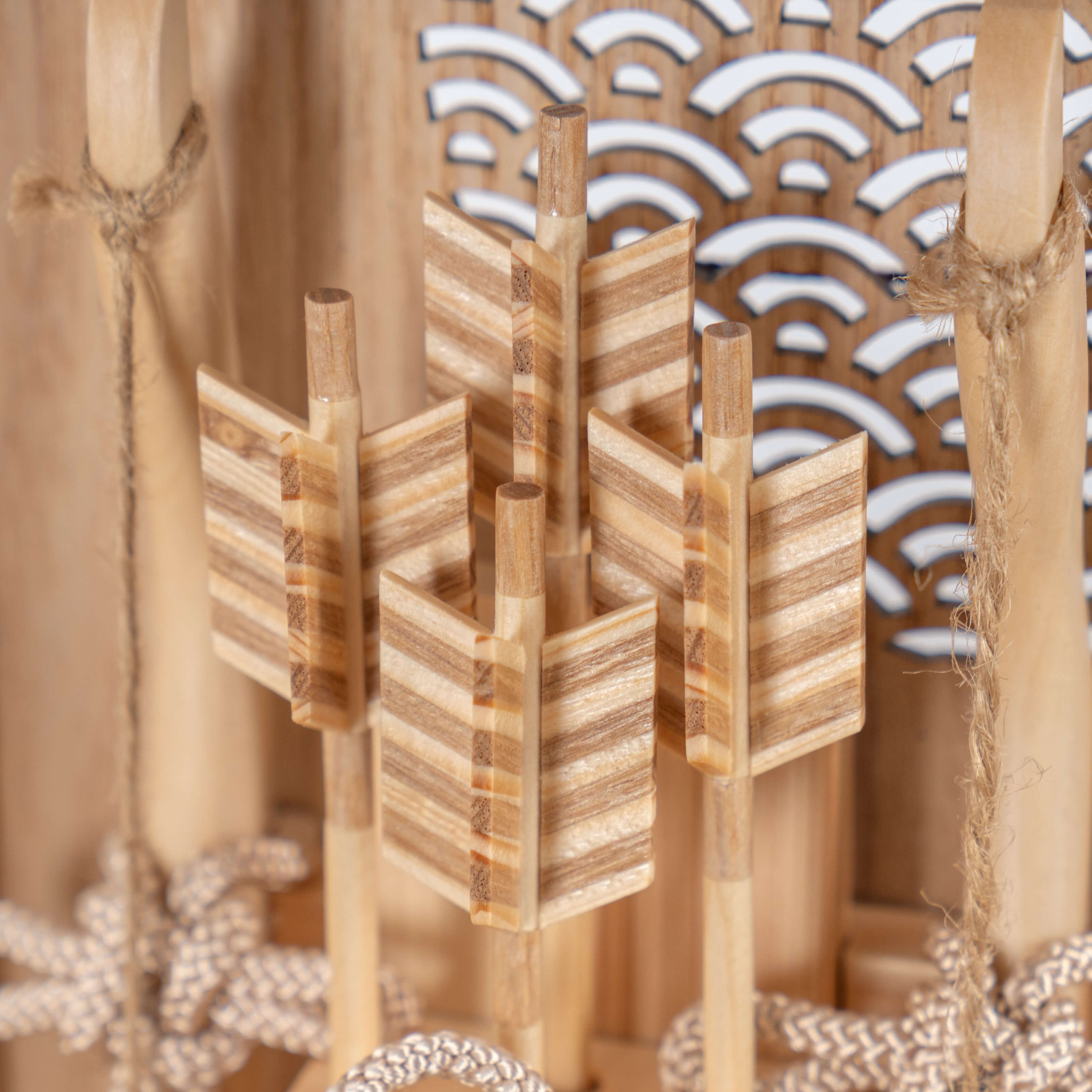 ことの破魔弓の矢羽部分には、寄木の技術を使用しております。