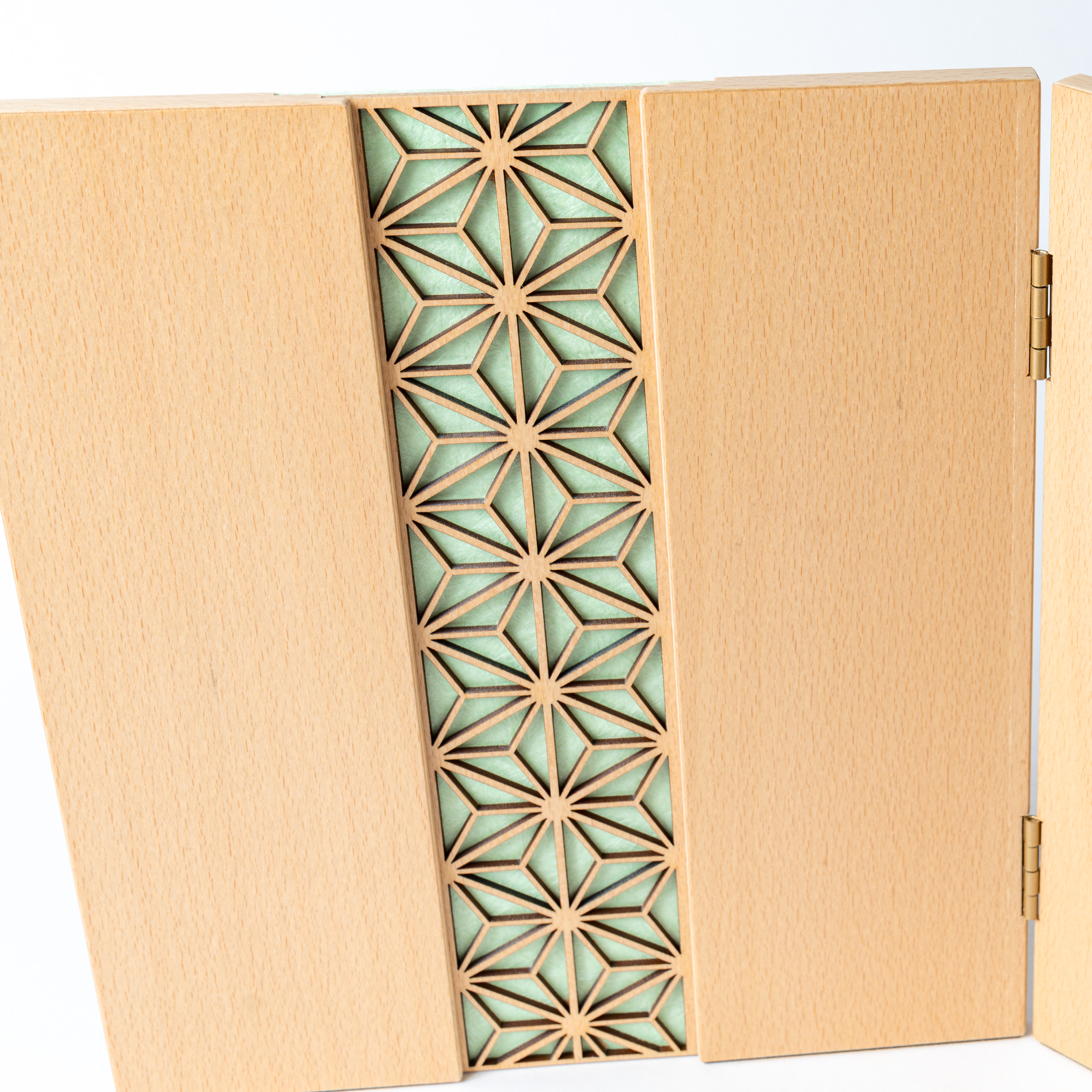 古来からの日本伝統の吉祥文様である麻の葉文様。麻の丈夫さ・成長の早さにあやかり、お子さまの健やかな成長への願いが込められています。