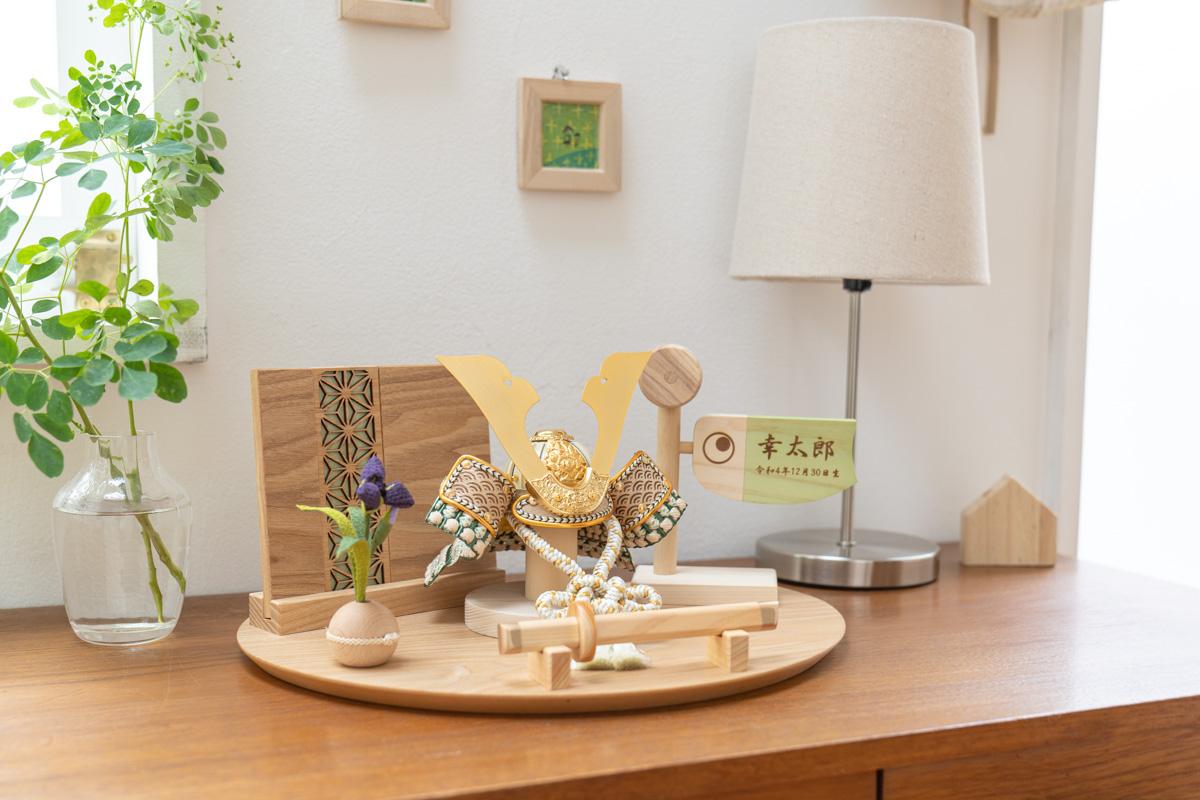 息子の初節句に合わせて購入しました。自然なデザインで、家に馴染む感じが気に入っています。想像以上にコンパクトでしたが、収納には便利だと思います。