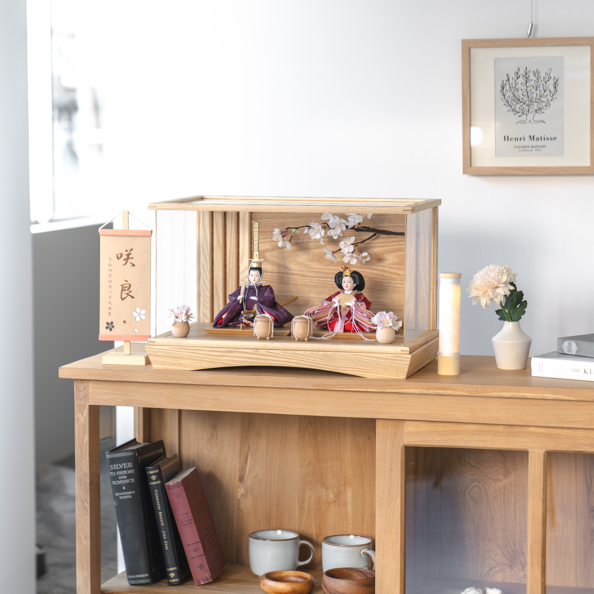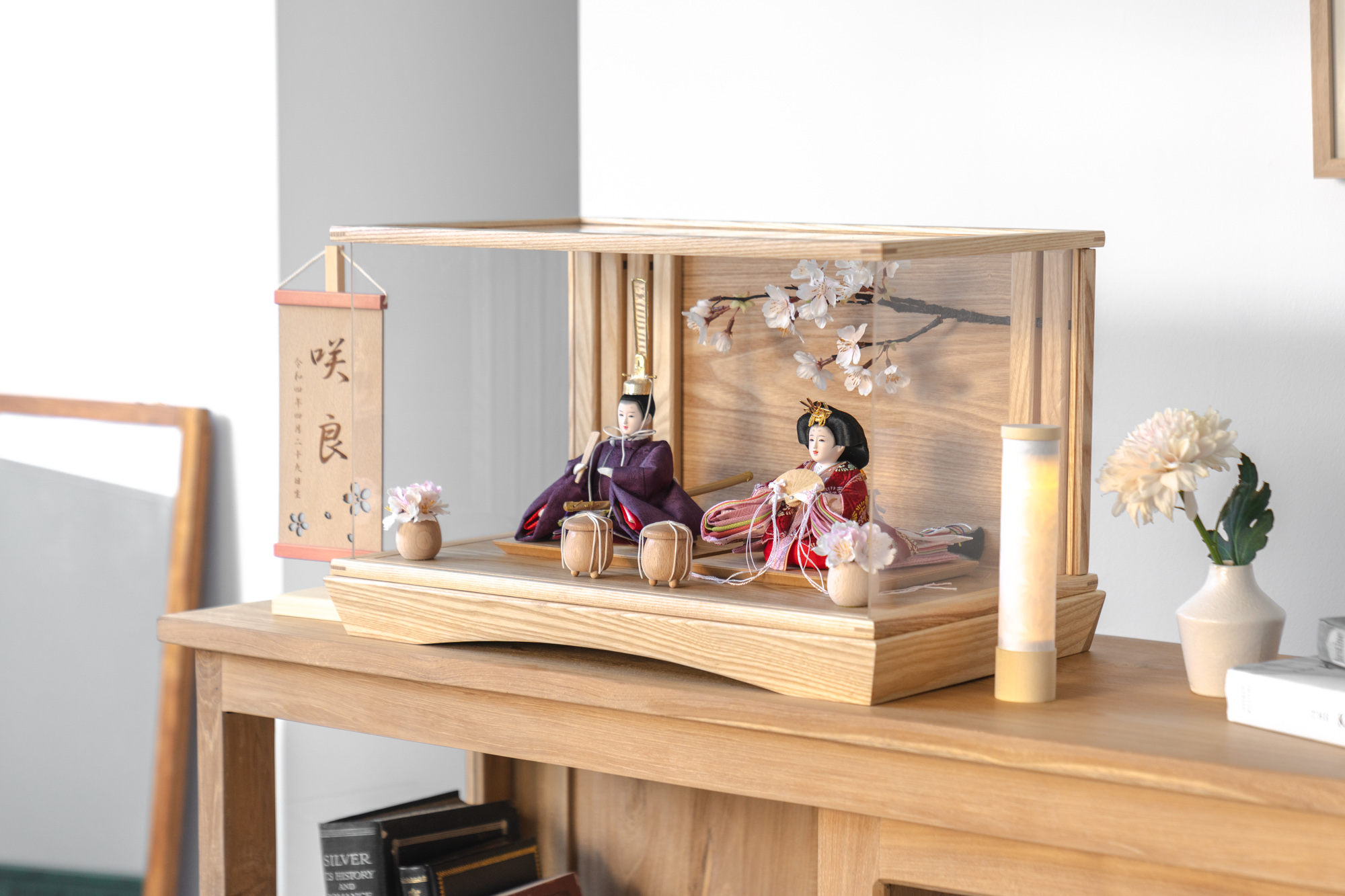 伝統工芸の技術、裏側や後ろ側、内部の見えない箇所や素材にまでこだわり抜いたひな人形。道具も木のぬくもりを感じて頂くために無垢材を使用しております。