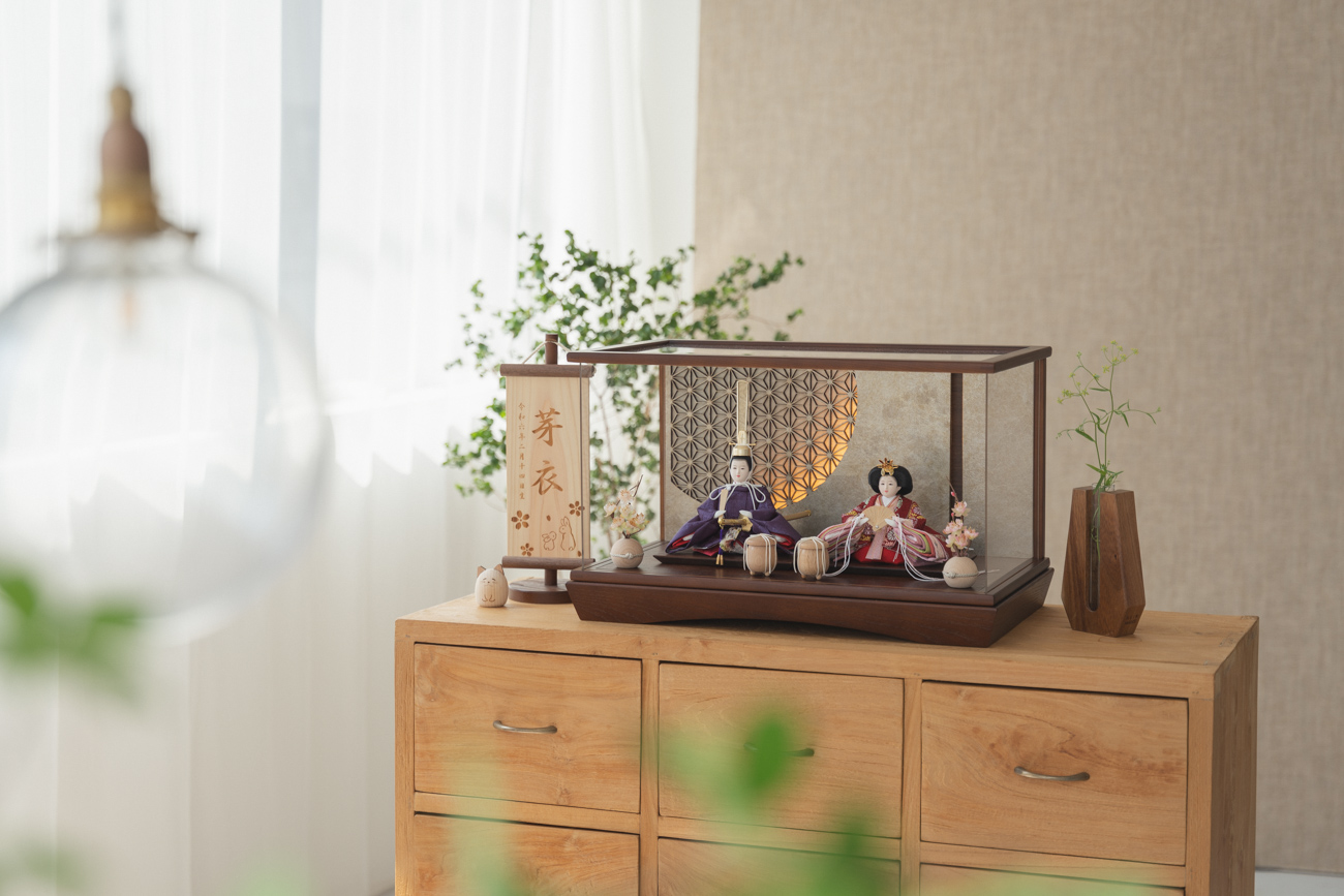 あえて飾る手間を残し、お子様とご一緒に手にとっていただき本物の素材、質感を感じてほしい「ことのひな人形」です。
