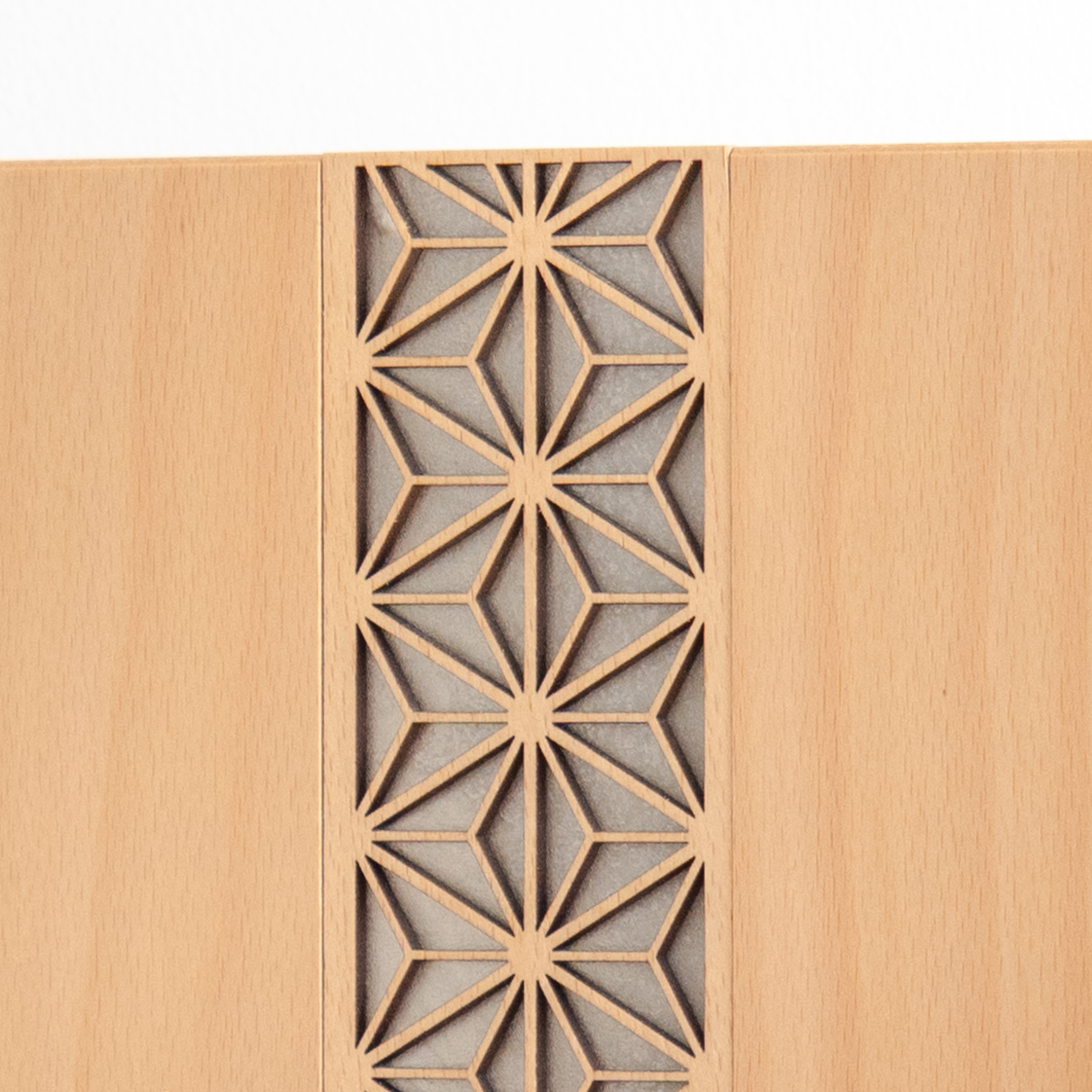 古来からの日本伝統の吉祥文様である麻の葉文様。麻の丈夫さ・成長の早さにあやかり、お子さまの健やかな成長への願いが込められています。