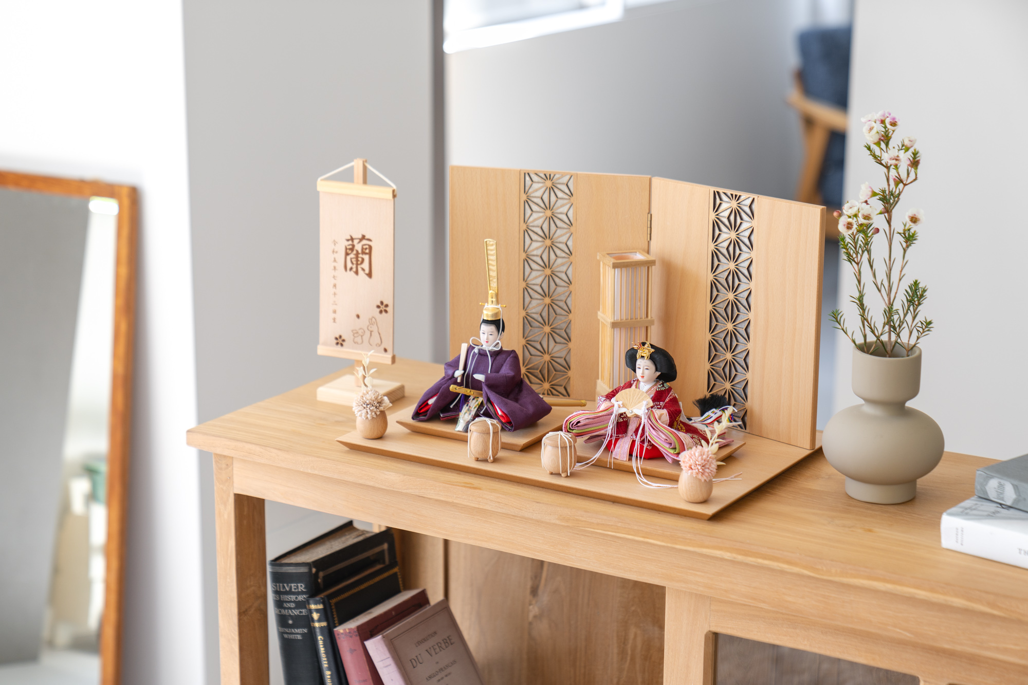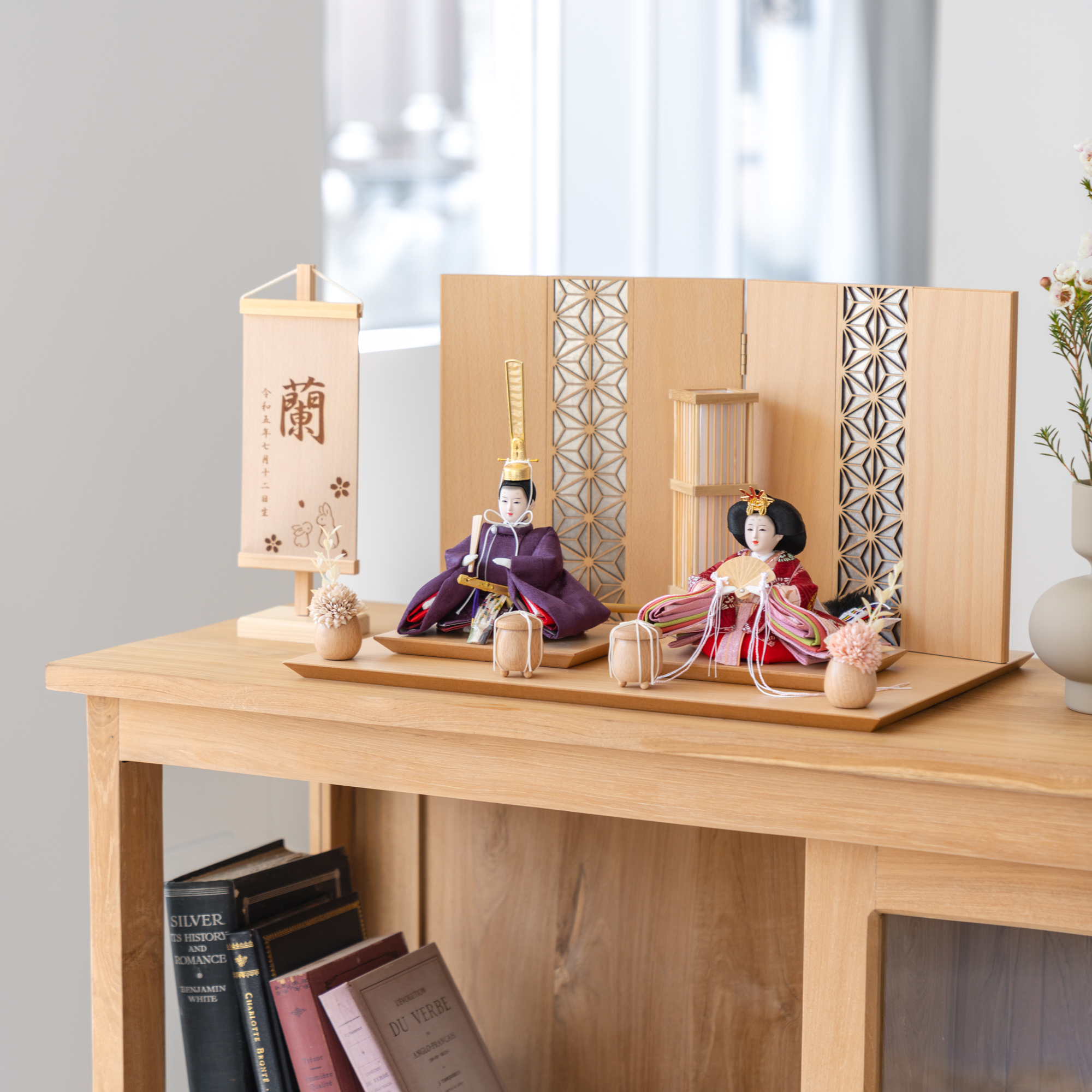 天然木の風合いを生かした木都の羽子板はひな人形と一緒に飾るのにぴったり。