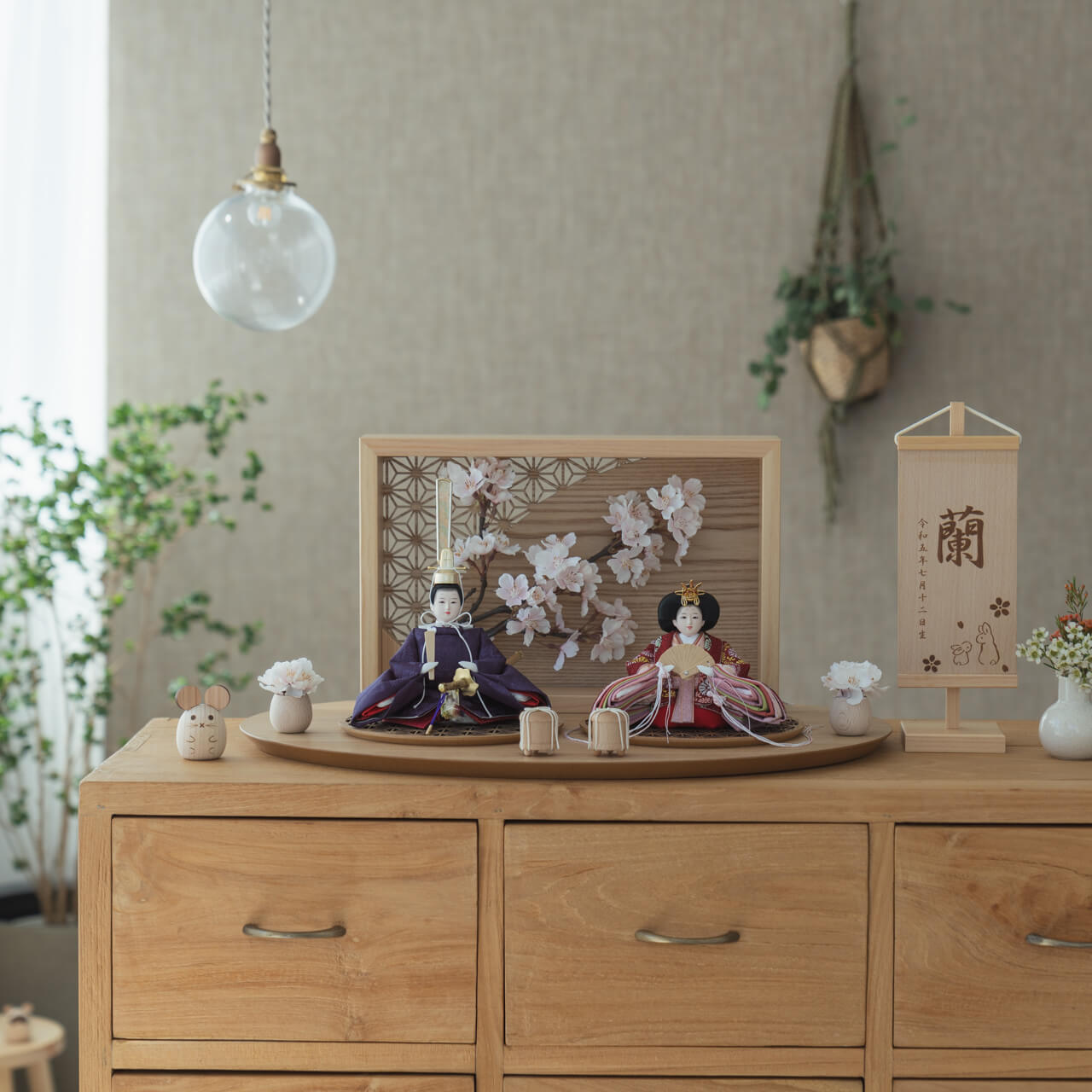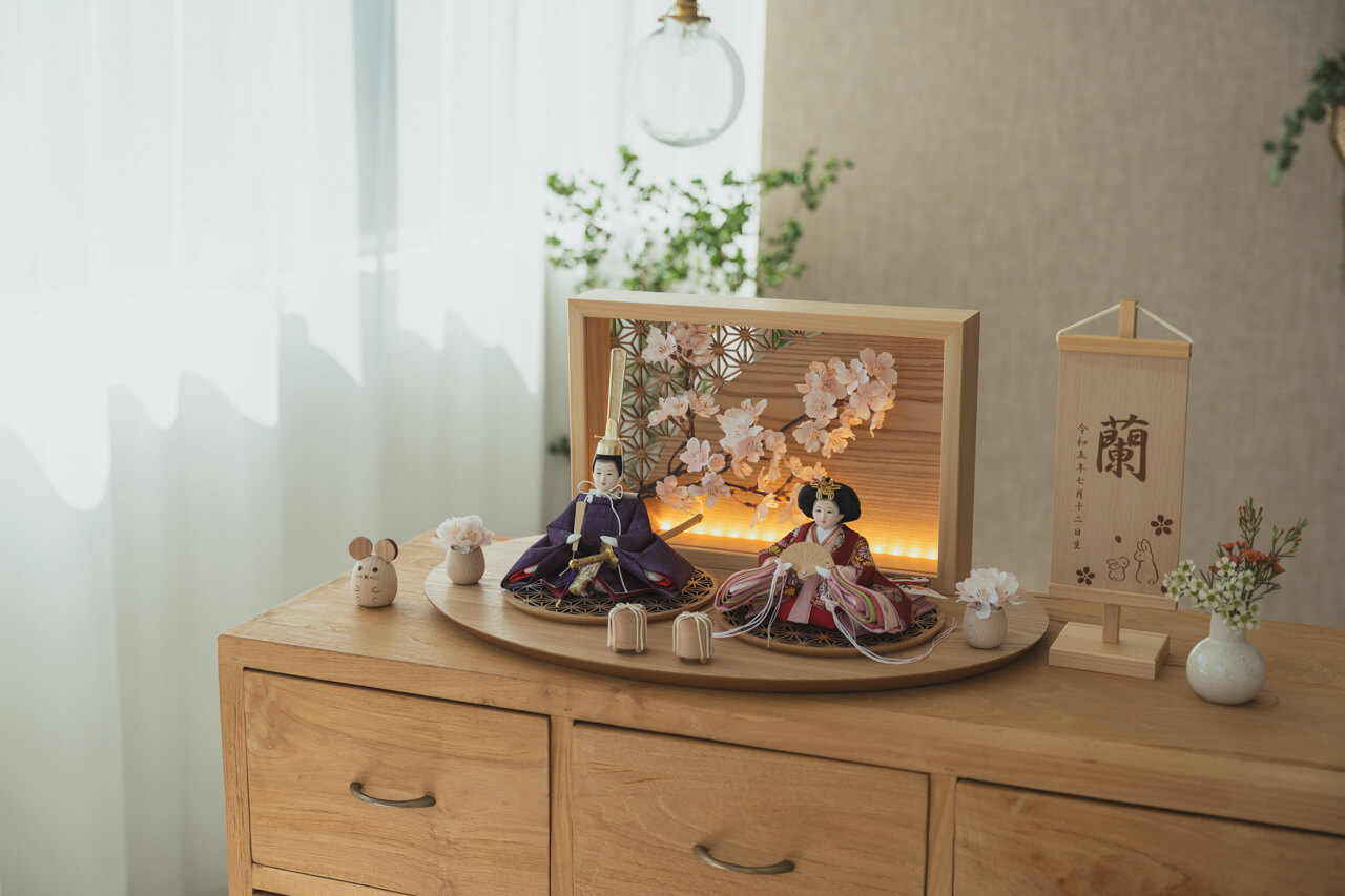 天然木の風合いを生かした木都の羽子板はひな人形と一緒に飾るのにぴったり。
