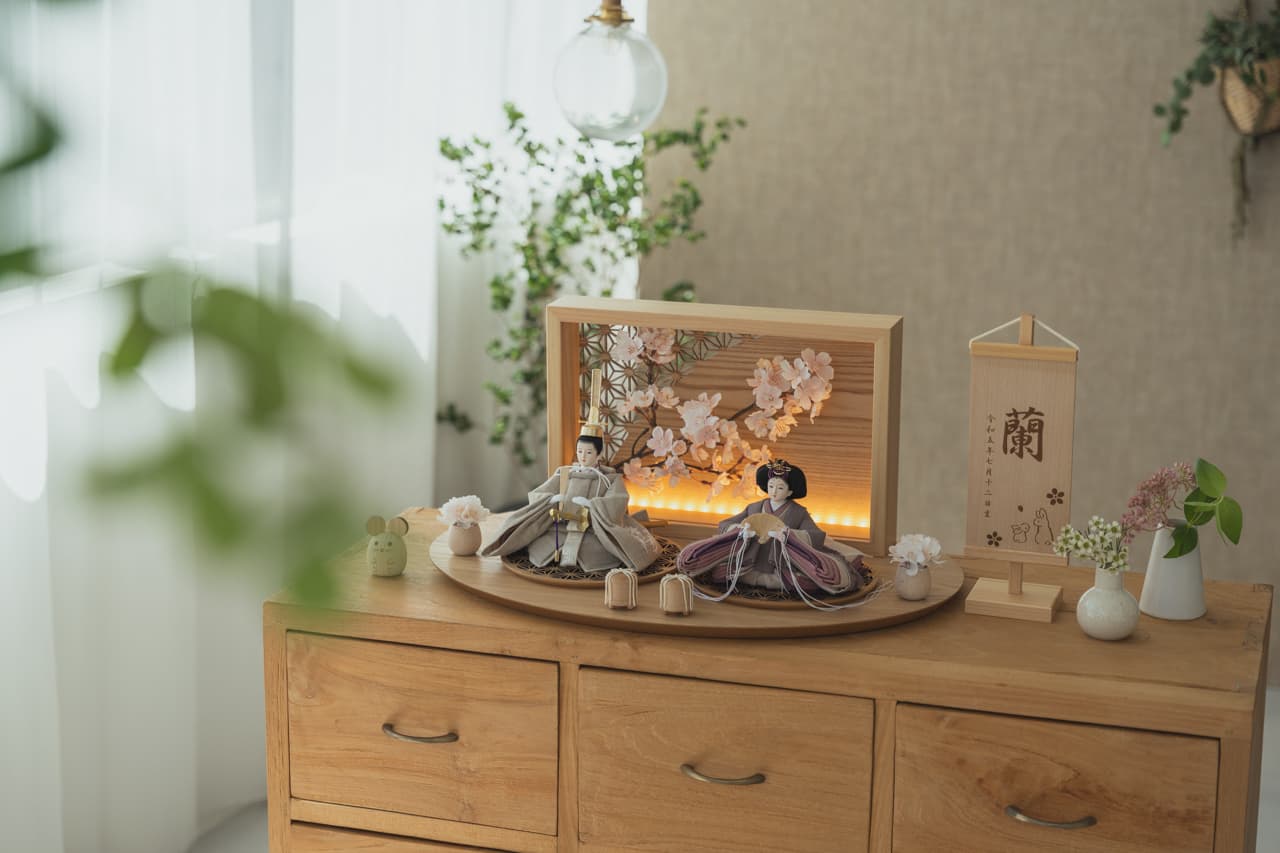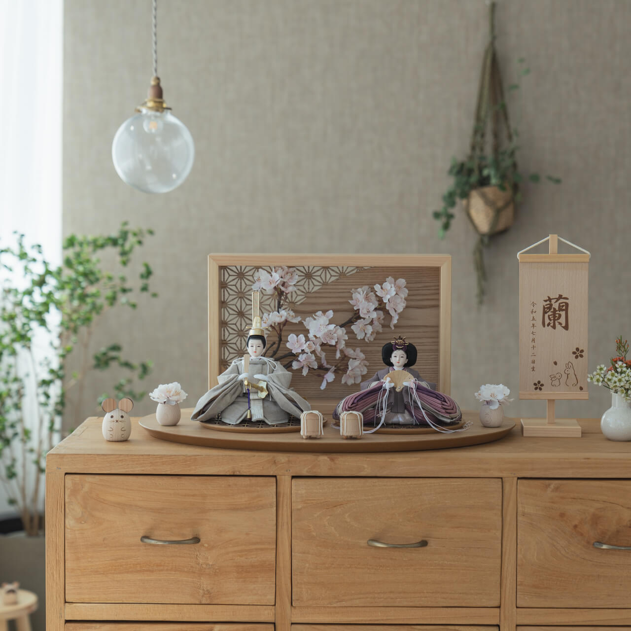 天然木の風合いを生かした木都の羽子板はひな人形と一緒に飾るのにぴったり。