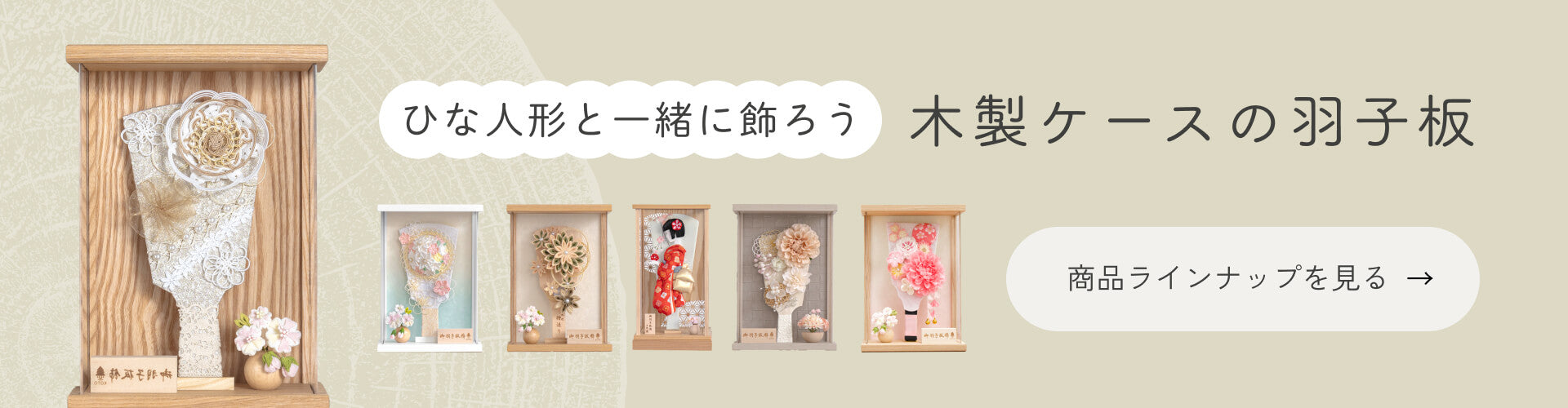 天然木の風合いを生かした木都の羽子板はひな人形と一緒に飾るのにぴったり。