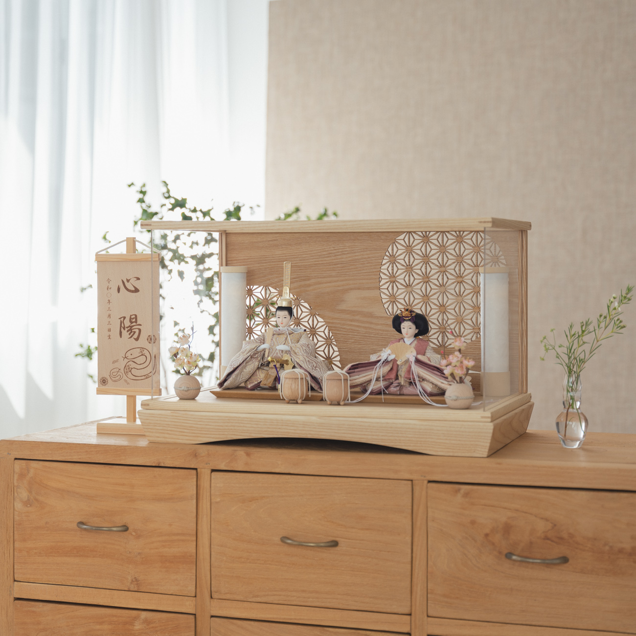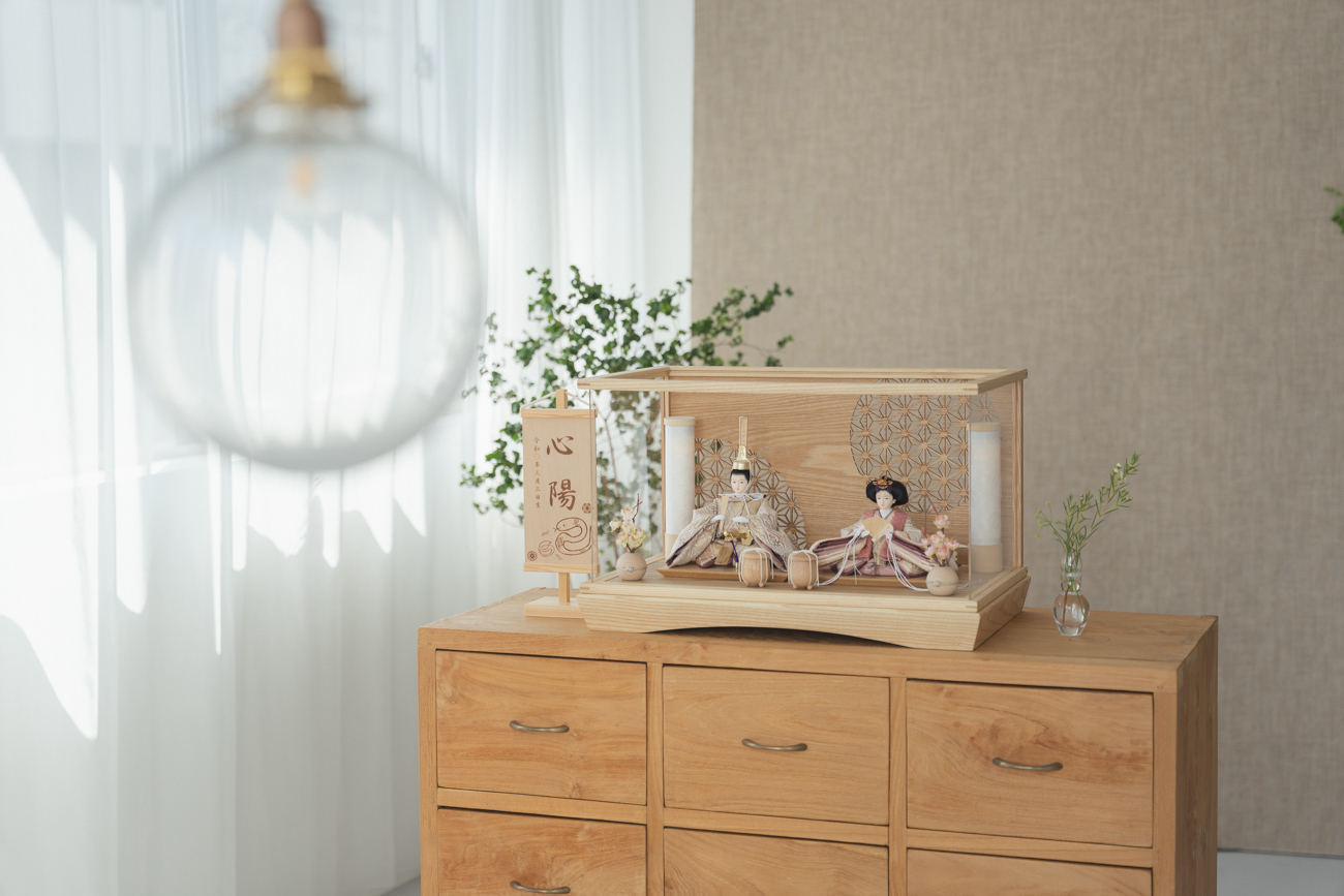 伝統工芸の技術、裏側や後ろ側、内部の見えない箇所や素材にまでこだわり抜いたひな人形。道具も木のぬくもりを感じて頂くために無垢材を使用しております。