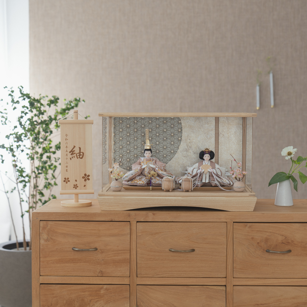 あえて飾る手間を残し、お子様とご一緒に手にとっていただき本物の素材、質感を感じてほしい「ことのひな人形」です。