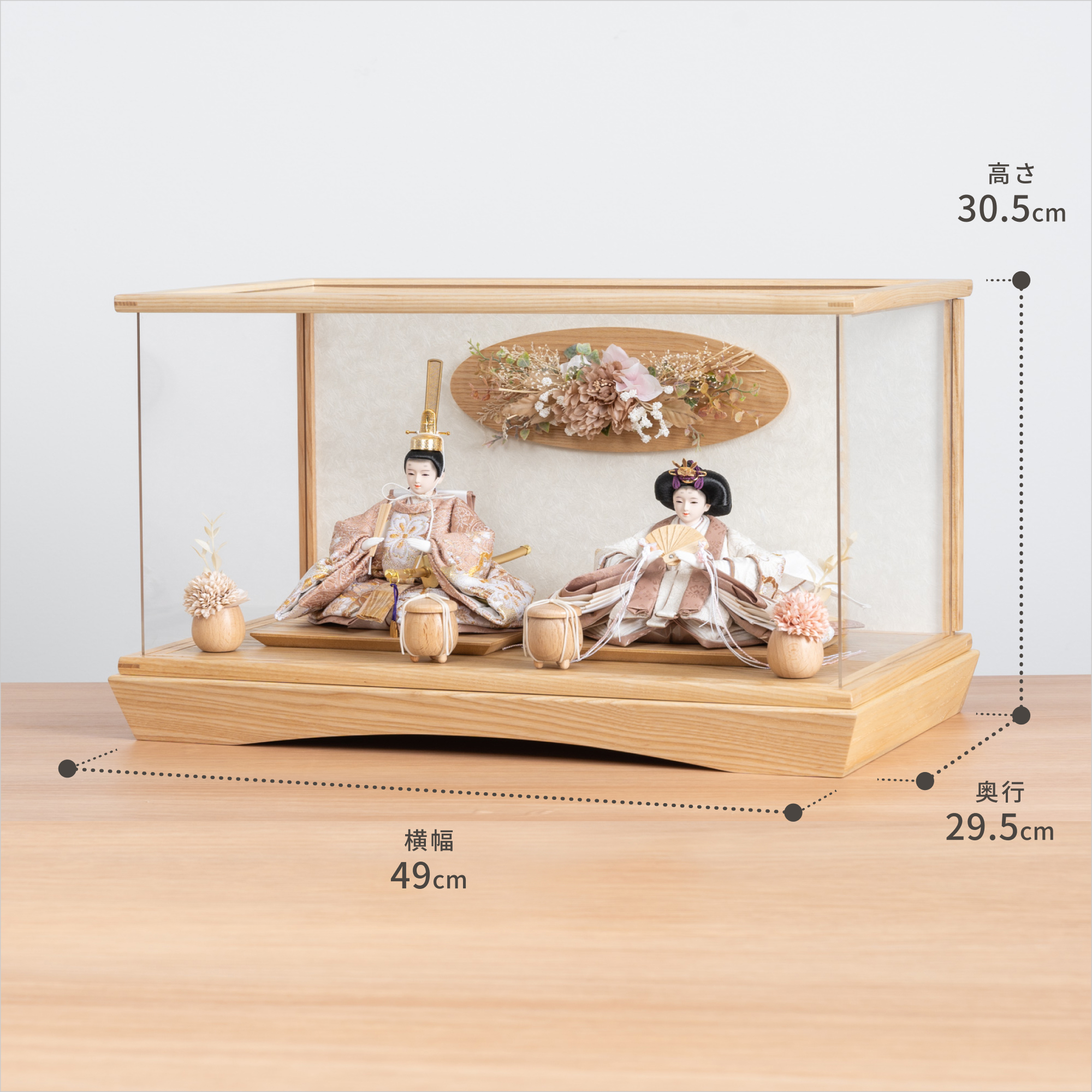 伝統工芸の技術、裏側や後ろ側、内部の見えない箇所や素材にまでこだわり抜いたひな人形。道具も木のぬくもりを感じて頂くために無垢材を使用しております。