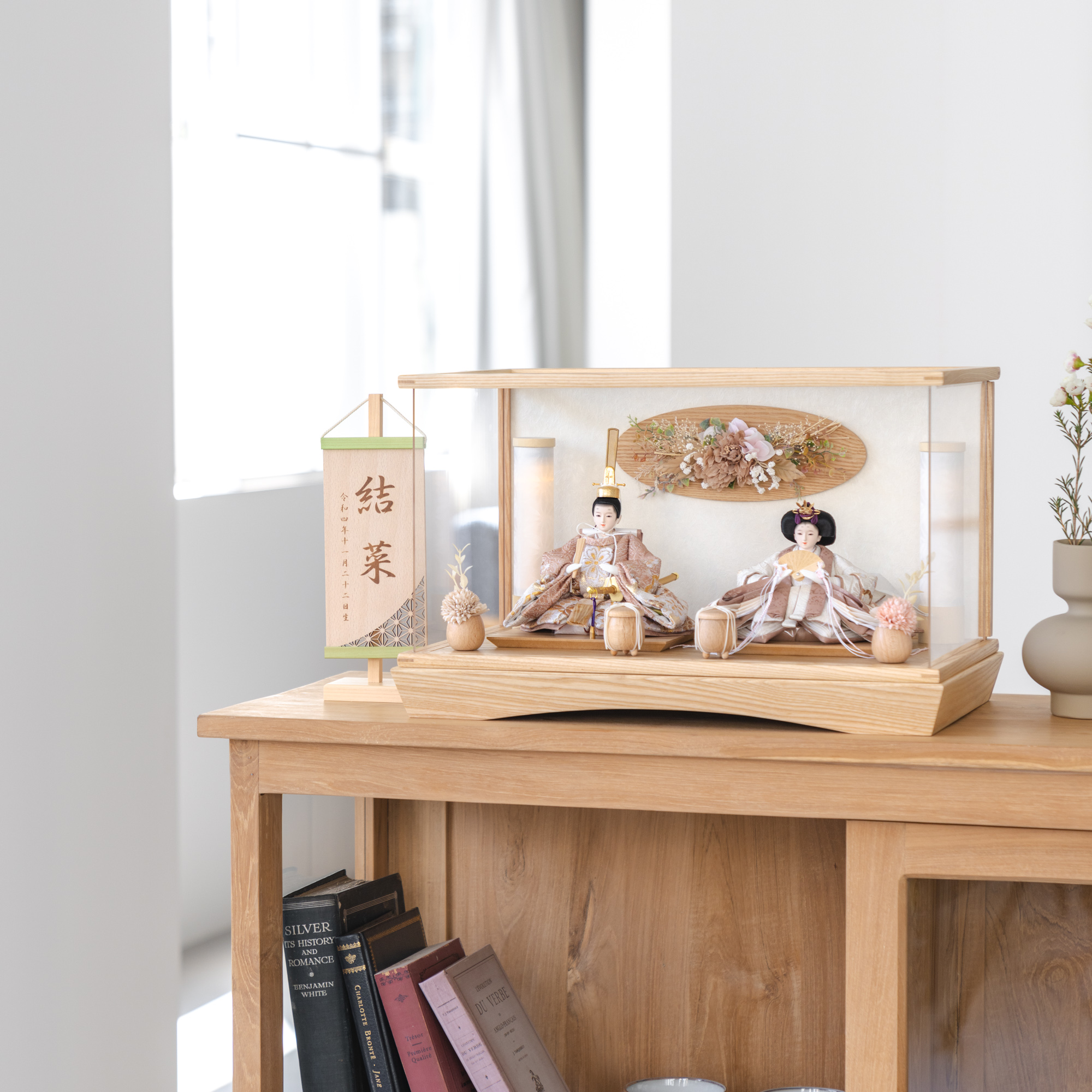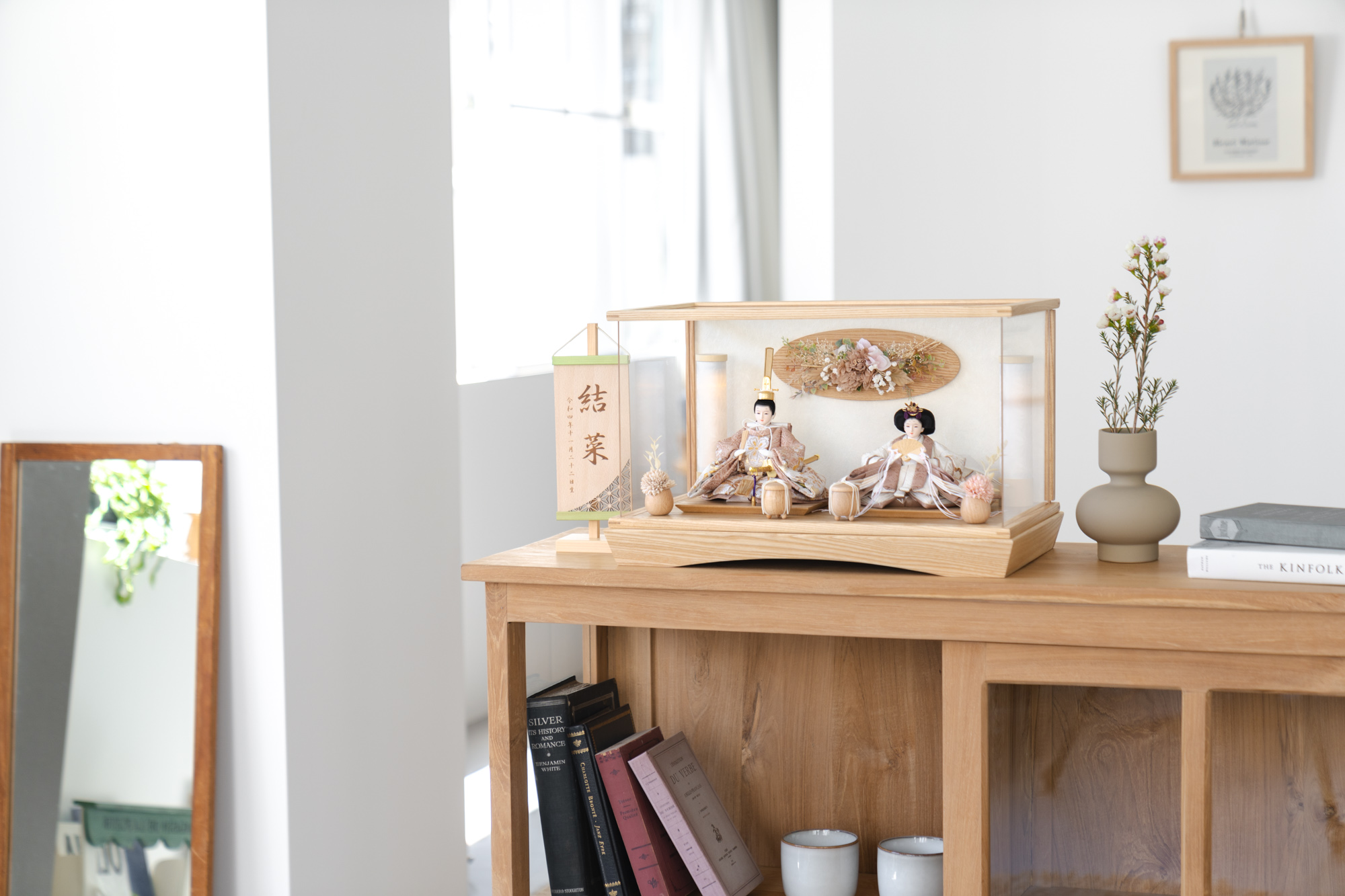 木都のケース飾りは、本物の素材や質感を感じながら親子で一緒に手に取って飾る体験をしてほしいから、あえて飾る手間を残しています。