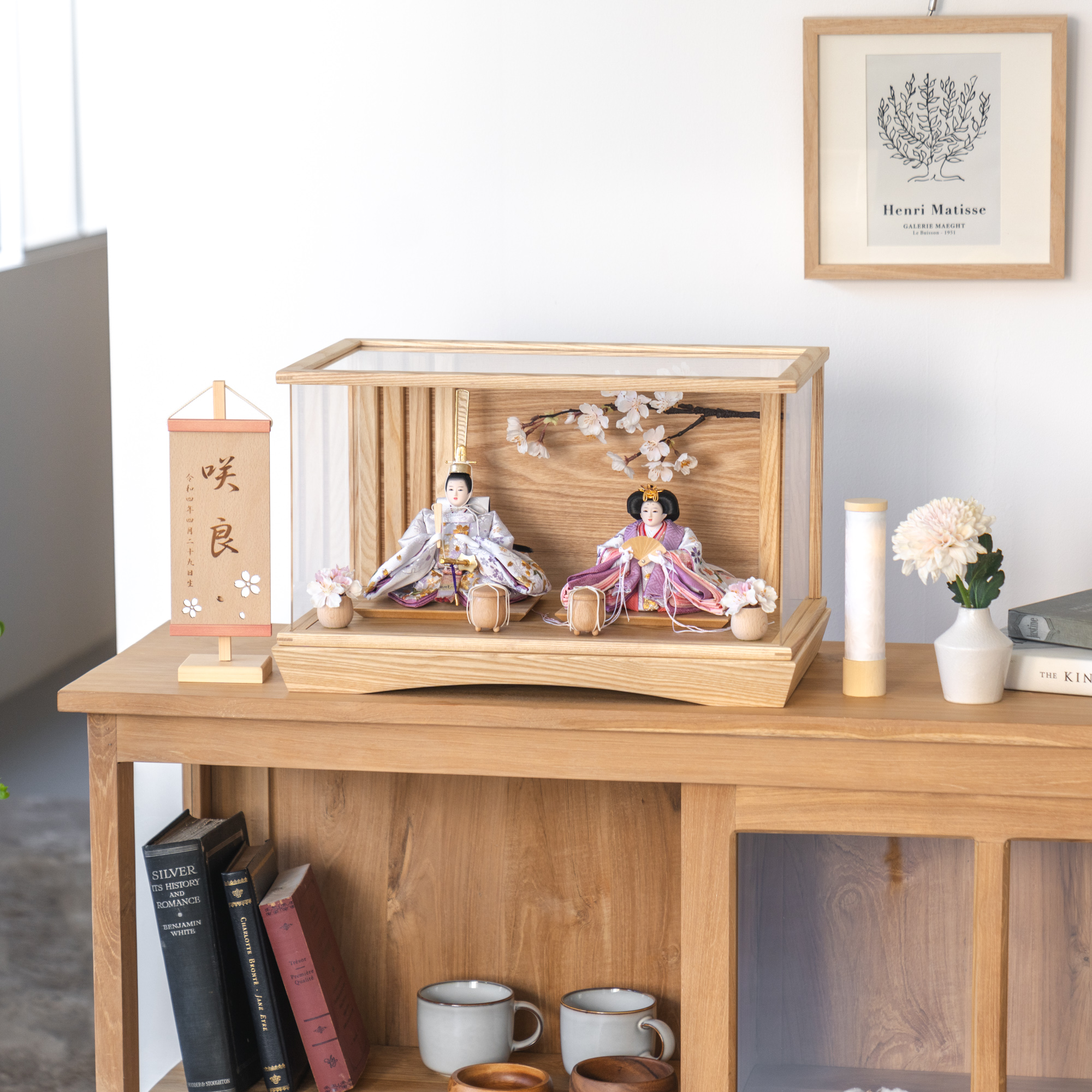 伝統工芸の技術、裏側や後ろ側、内部の見えない箇所や素材にまでこだわり抜いたひな人形。道具も木のぬくもりを感じて頂くために無垢材を使用しております。