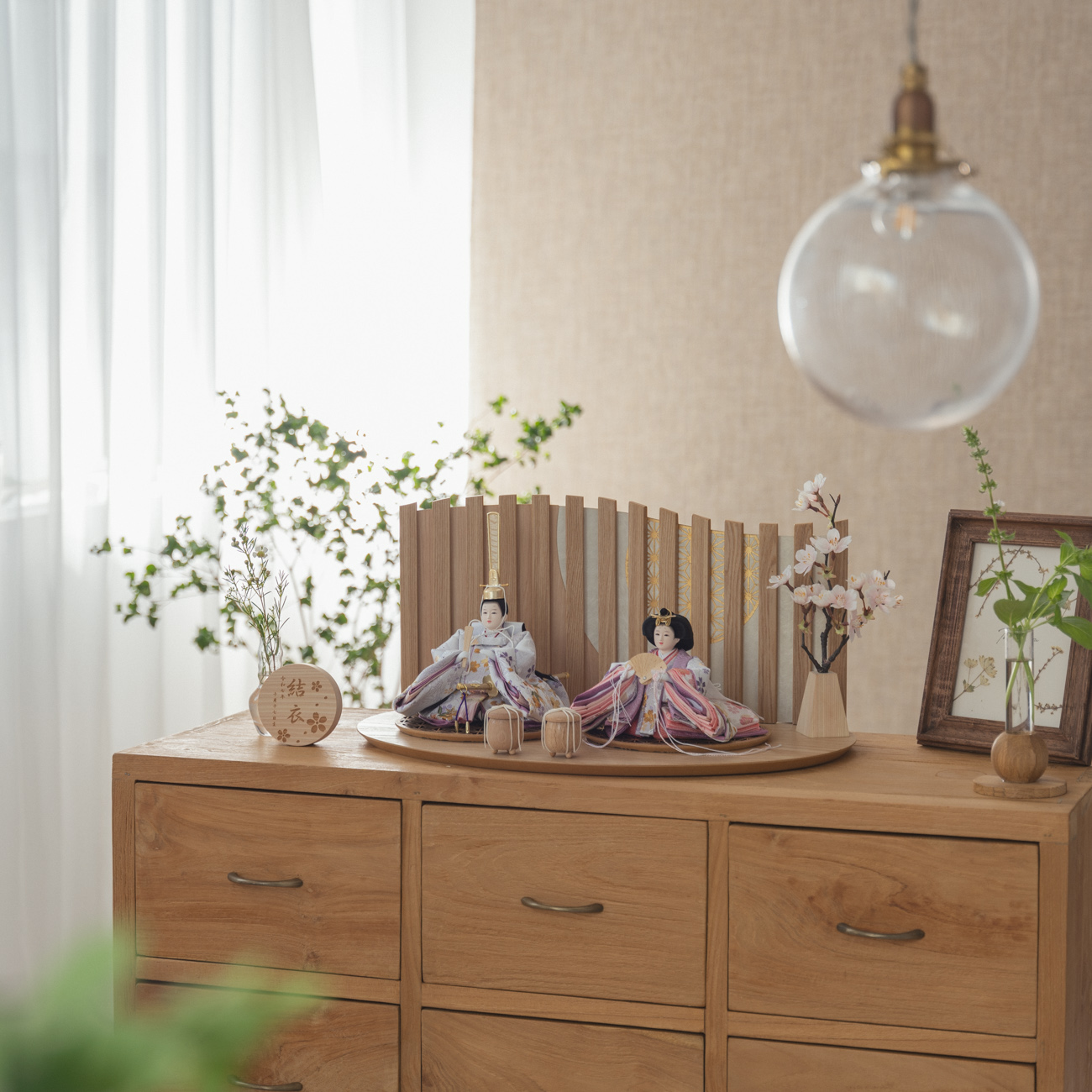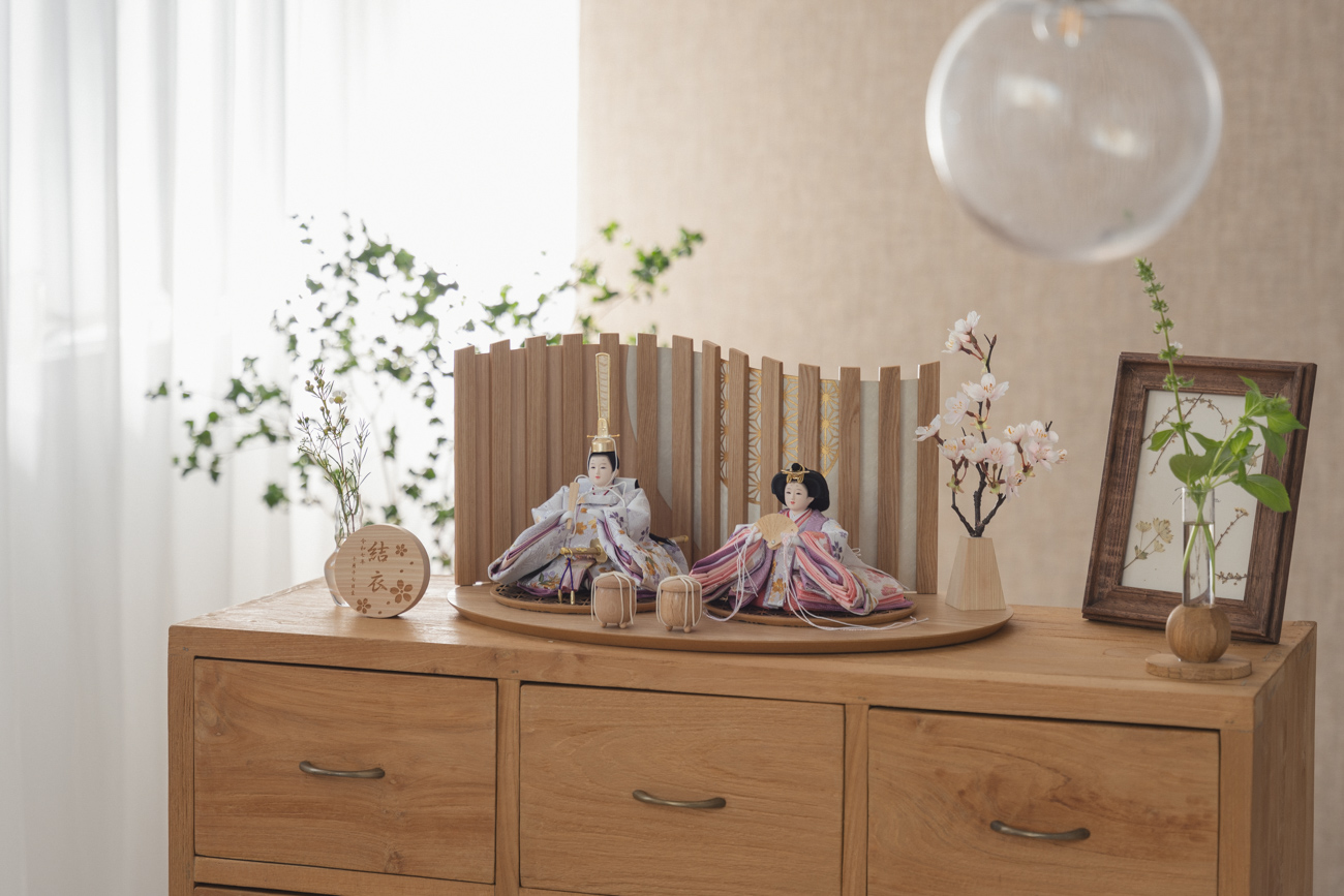 天然木の風合いを生かした木都の羽子板はひな人形と一緒に飾るのにぴったり。