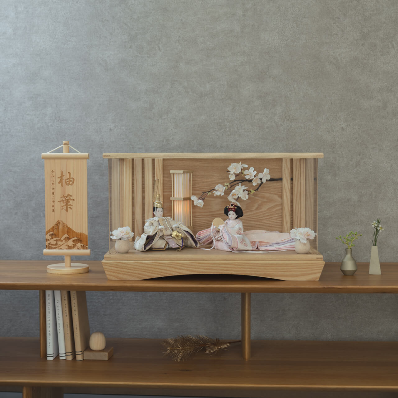 天然木の風合いを生かした木都の羽子板はひな人形と一緒に飾るのにぴったり。