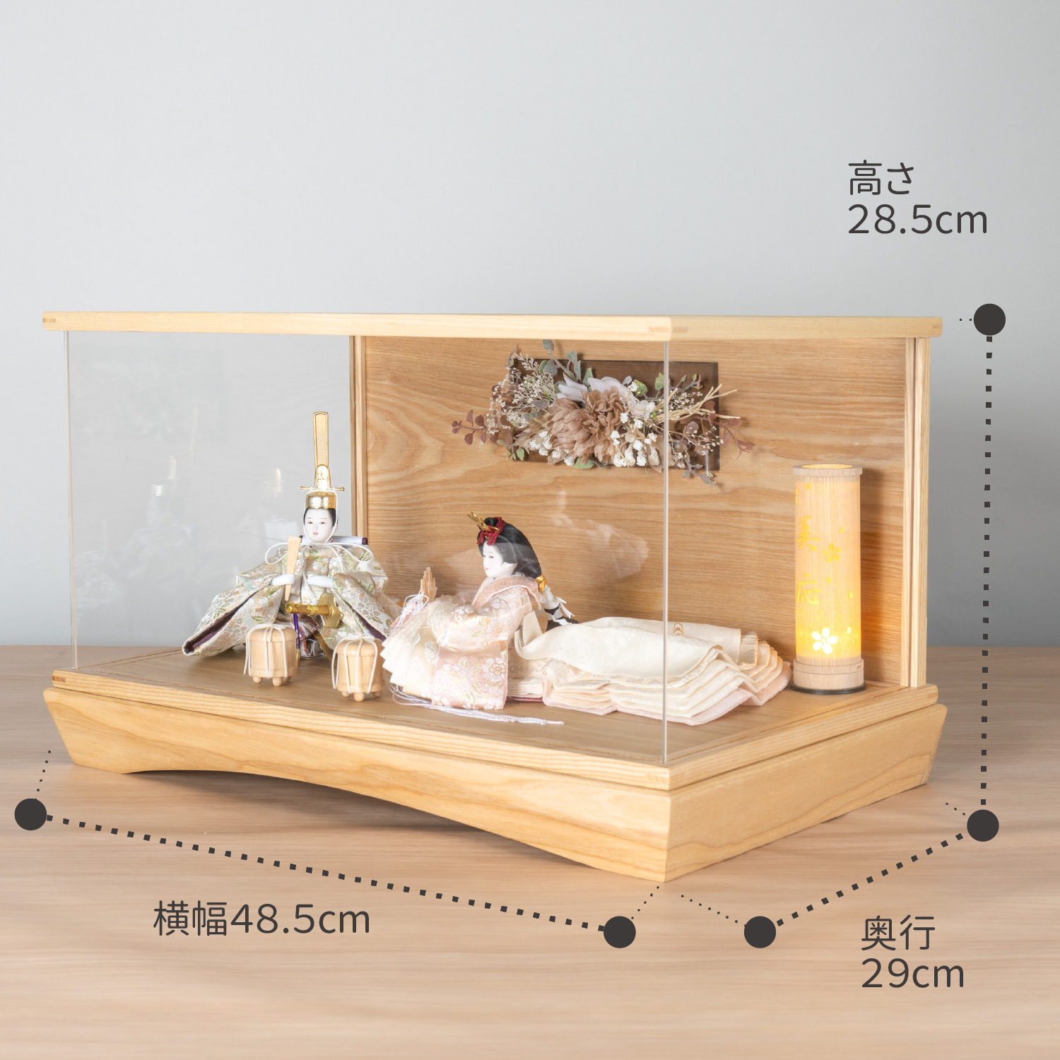 一般的なケース飾りの商品はコストや飾る手間を省くためにお人形の衣装を簡略化したり、設置箇所が固定されていますが、木都のお人形は伝統的な技法でお仕立てをし、親王台以外の設置箇所をあえて固定しておりません。