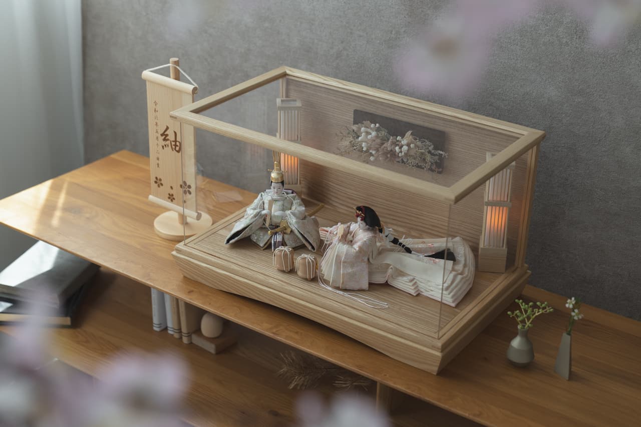 木都のケース飾りは、本物の素材や質感を感じながら親子で一緒に手に取って飾る体験をしてほしいから、あえて飾る手間を残しています。