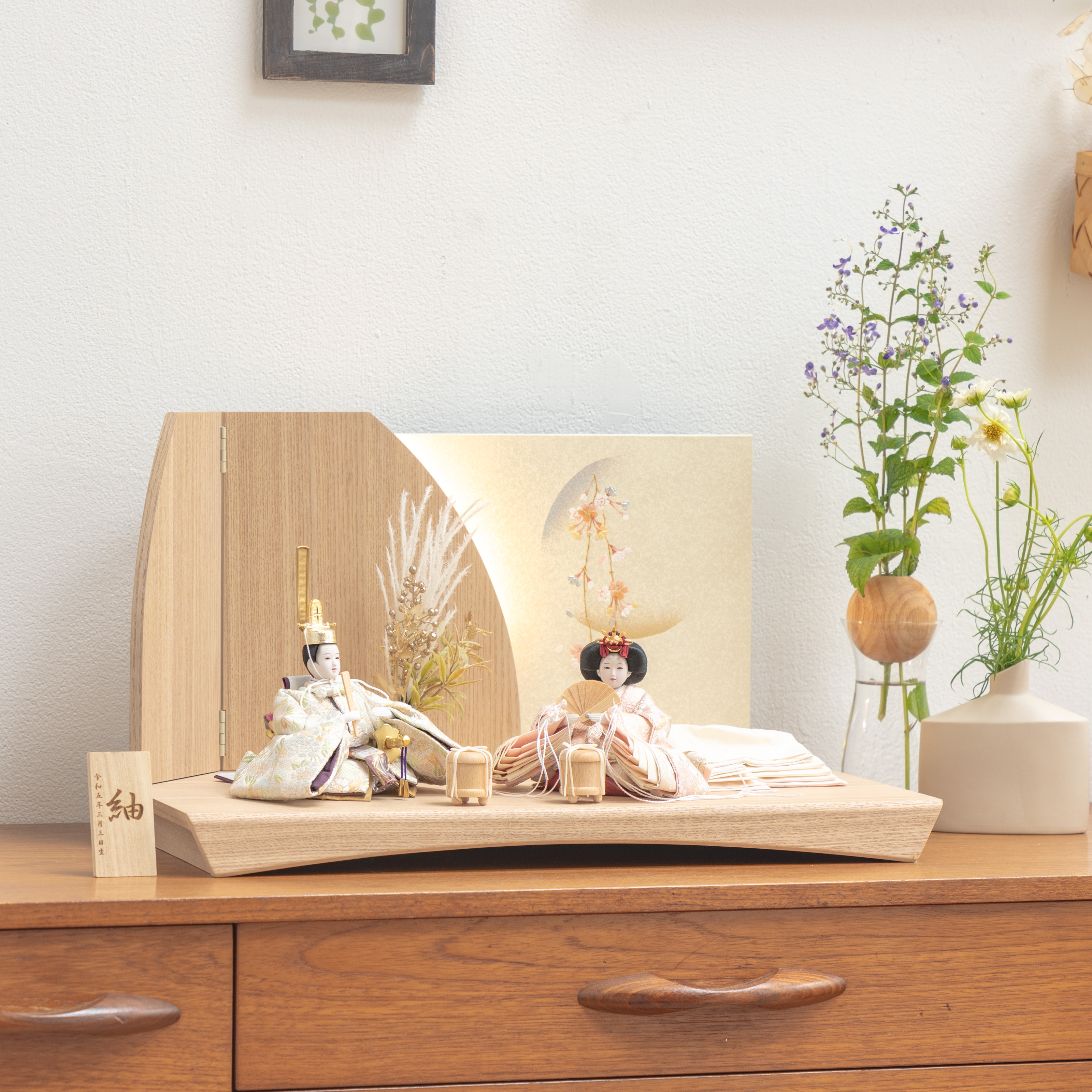 天然木の風合いを生かした木都の羽子板はひな人形と一緒に飾るのにぴったり。