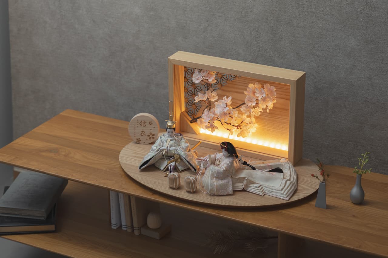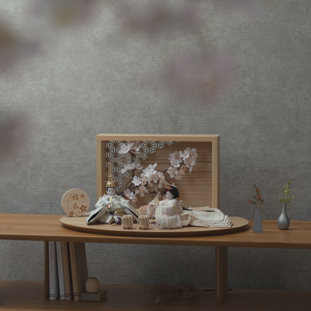天然木の風合いを生かした木都の羽子板はひな人形と一緒に飾るのにぴったり。