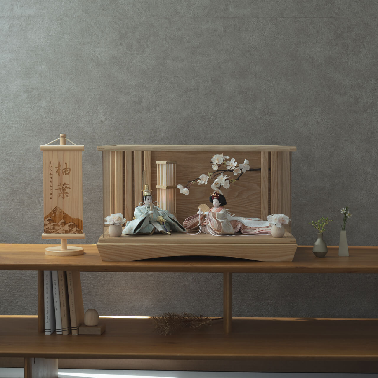 天然木の風合いを生かした木都の羽子板はひな人形と一緒に飾るのにぴったり。