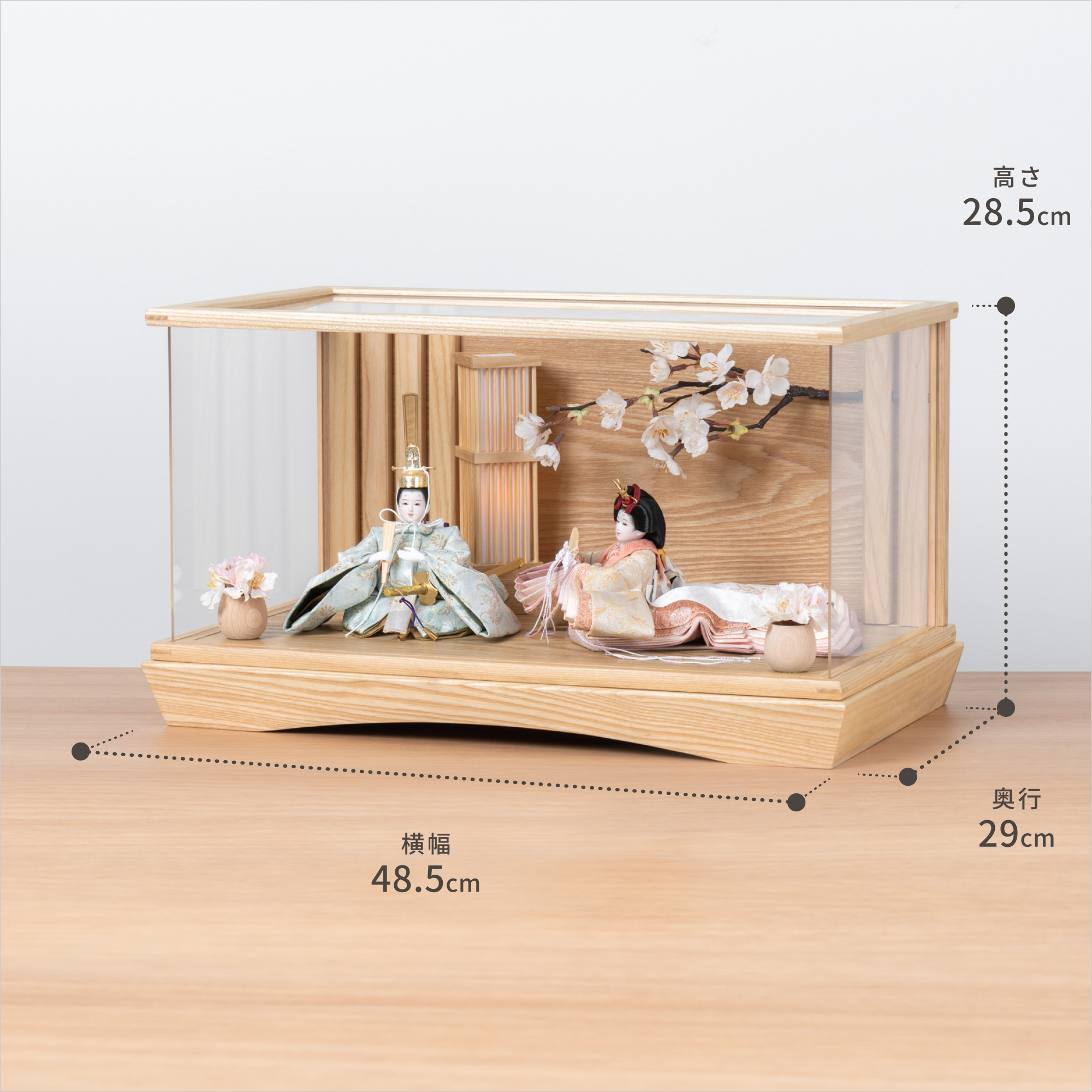 一般的なケース飾りの商品はコストや飾る手間を省くためにお人形の衣装を簡略化したり、設置箇所が固定されていますが、木都のお人形は伝統的な技法でお仕立てをし、親王台以外の設置箇所をあえて固定しておりません。