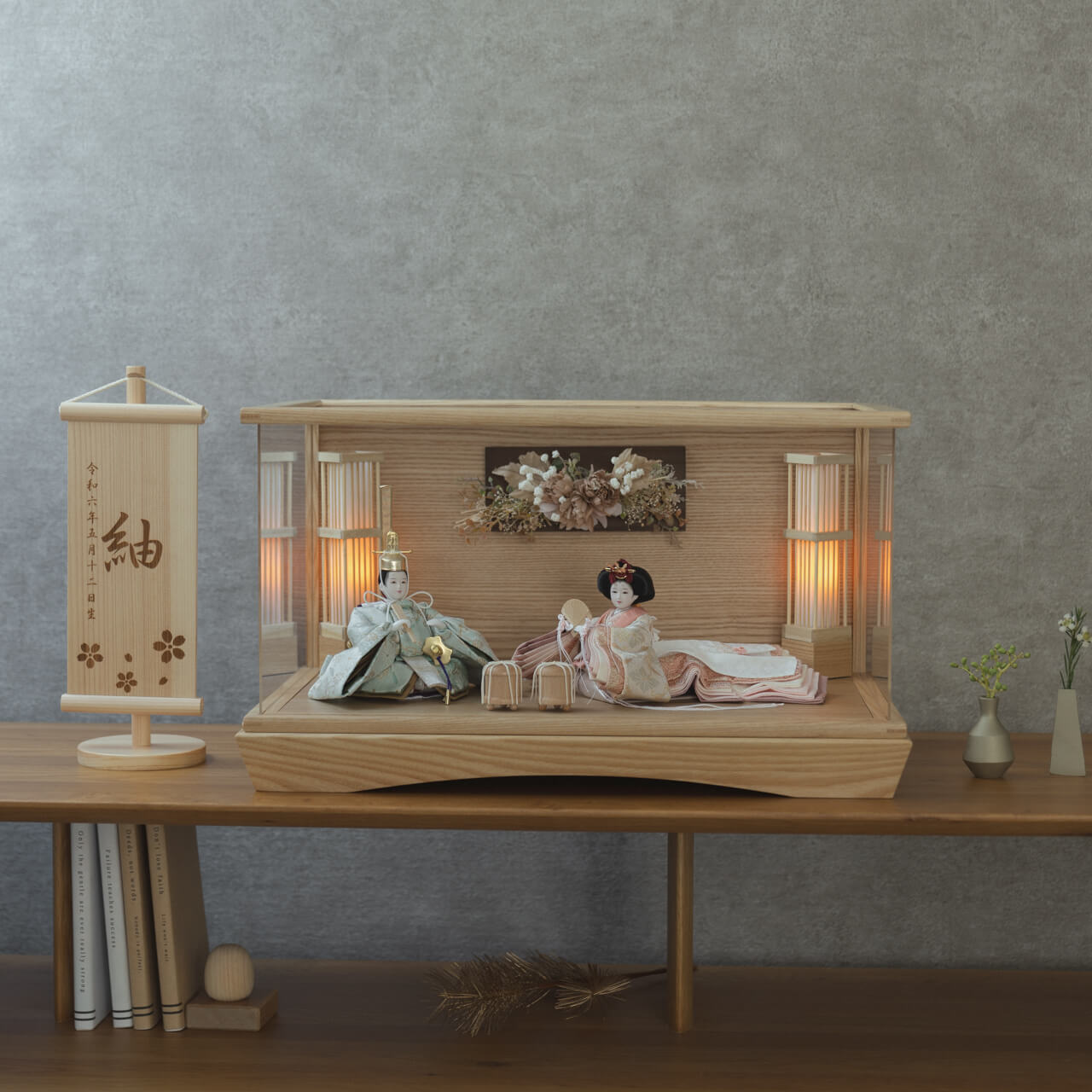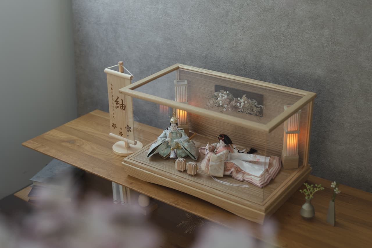木都のケース飾りは、本物の素材や質感を感じながら親子で一緒に手に取って飾る体験をしてほしいから、あえて飾る手間を残しています。