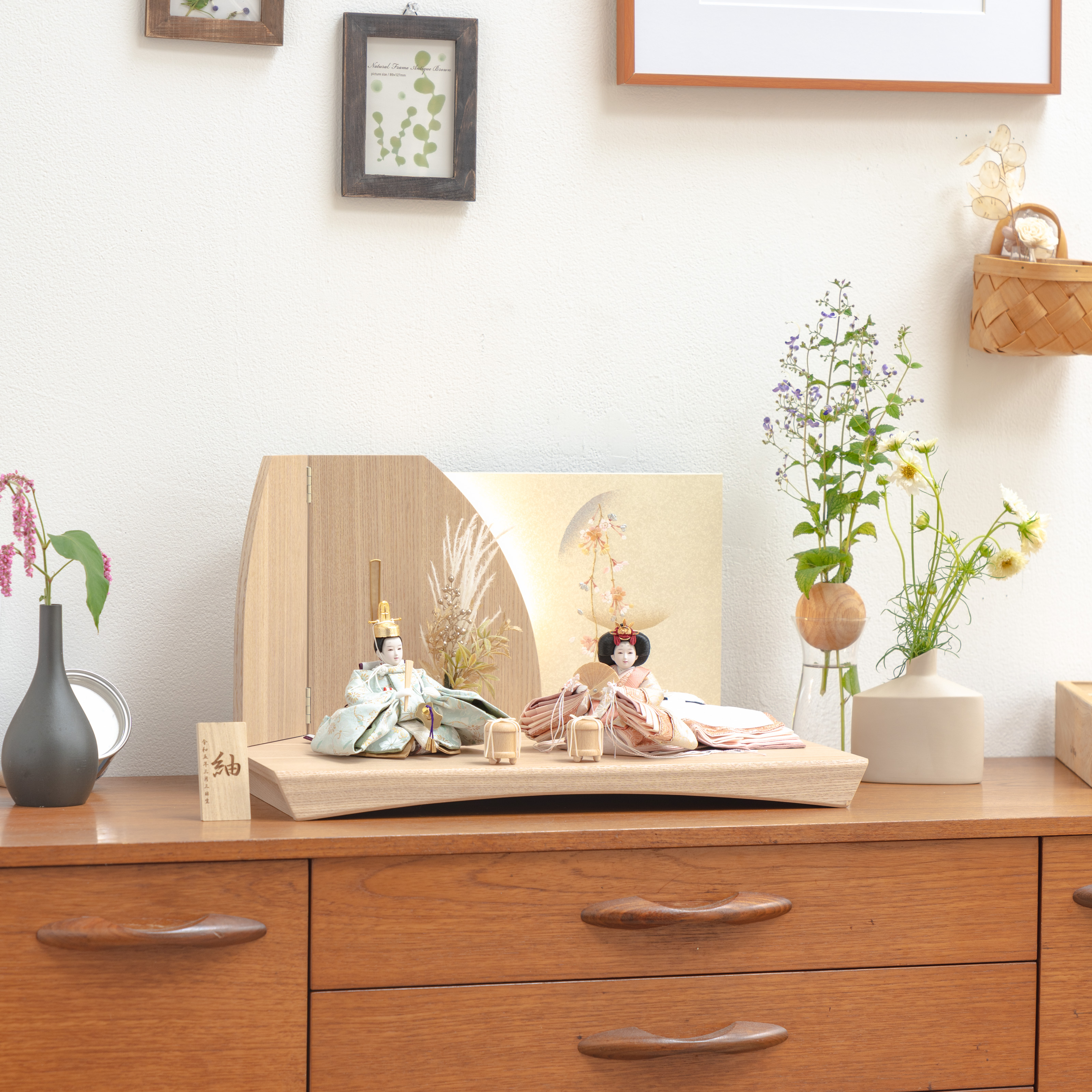 天然木の風合いを生かした木都の羽子板はひな人形と一緒に飾るのにぴったり。