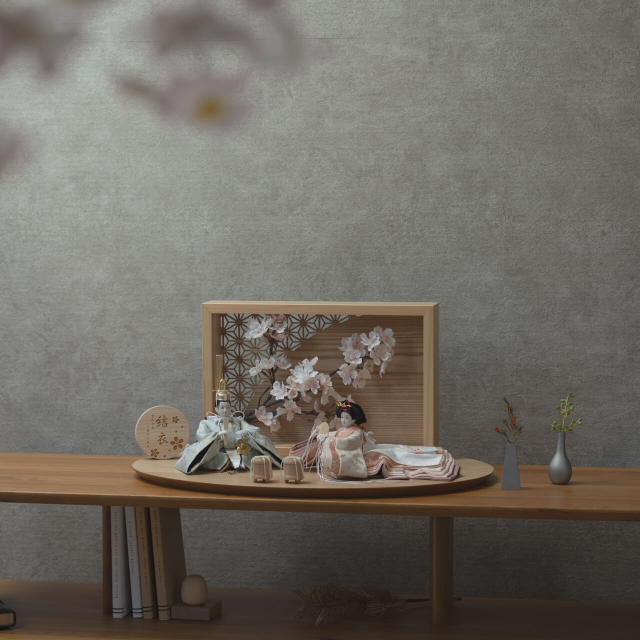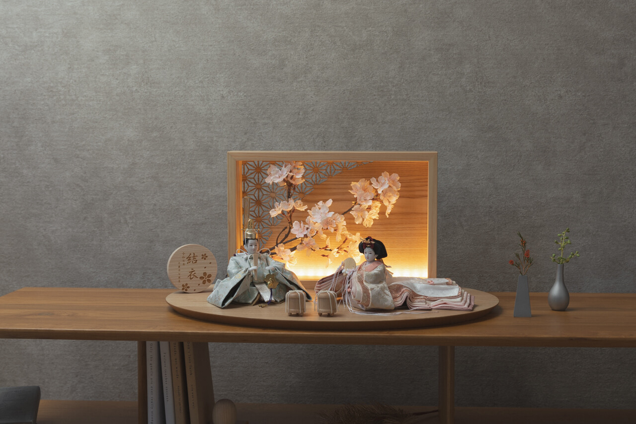 天然木の風合いを生かした木都の羽子板はひな人形と一緒に飾るのにぴったり。