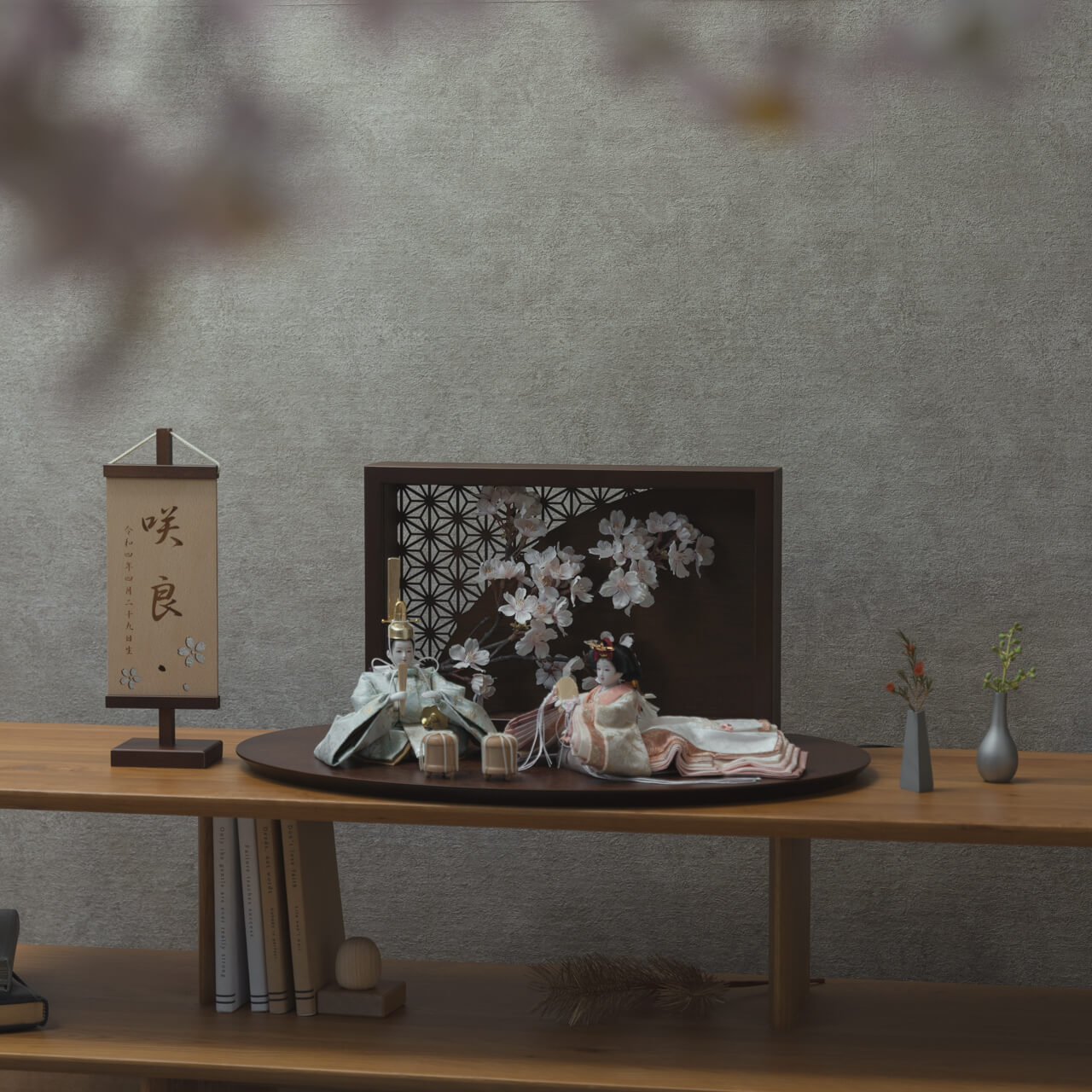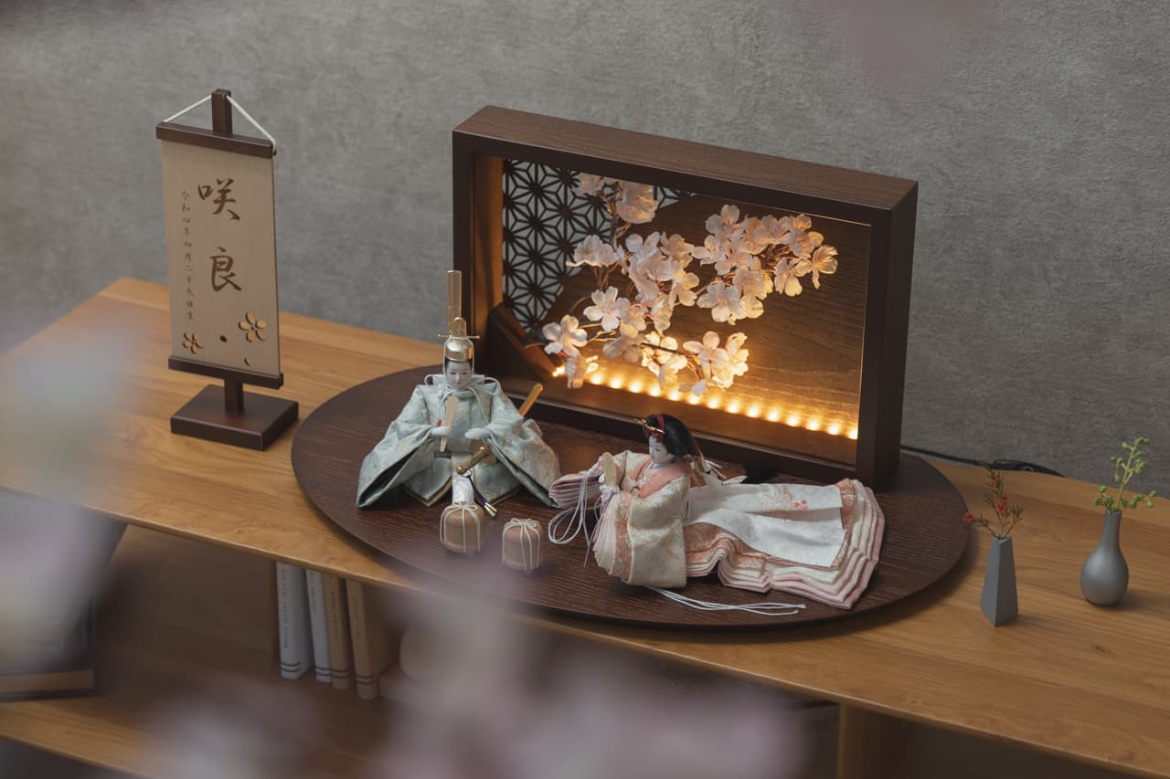 天然木の風合いを生かした木都の羽子板はひな人形と一緒に飾るのにぴったり。