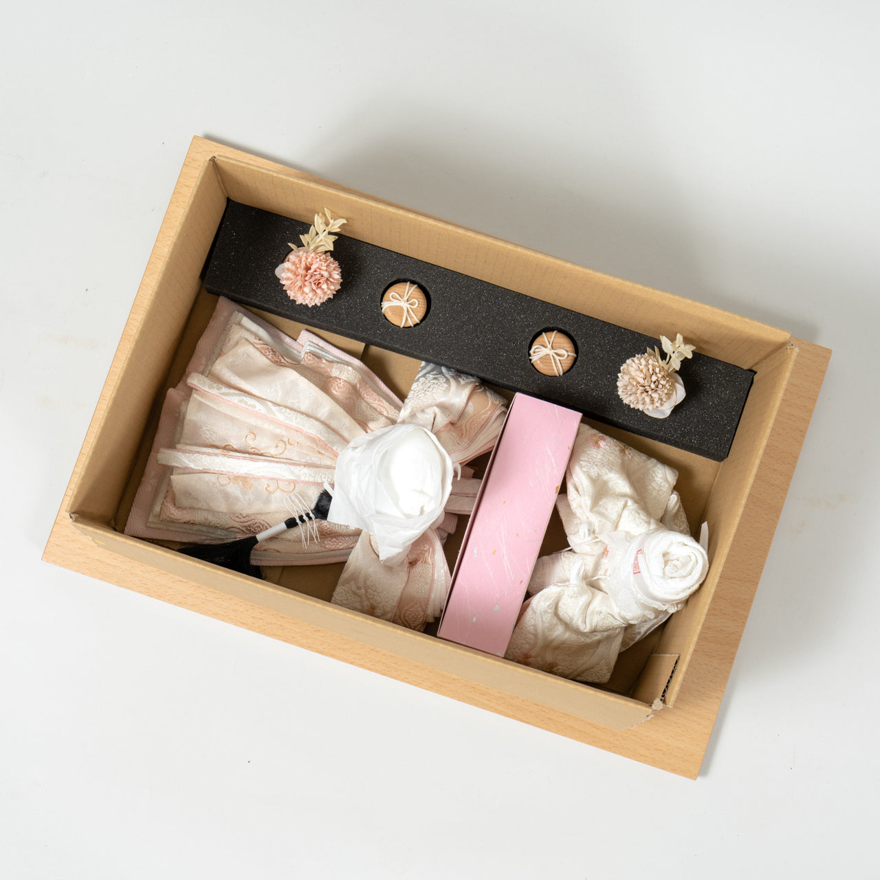 天然木の風合いを生かした木都の羽子板はひな人形と一緒に飾るのにぴったり。