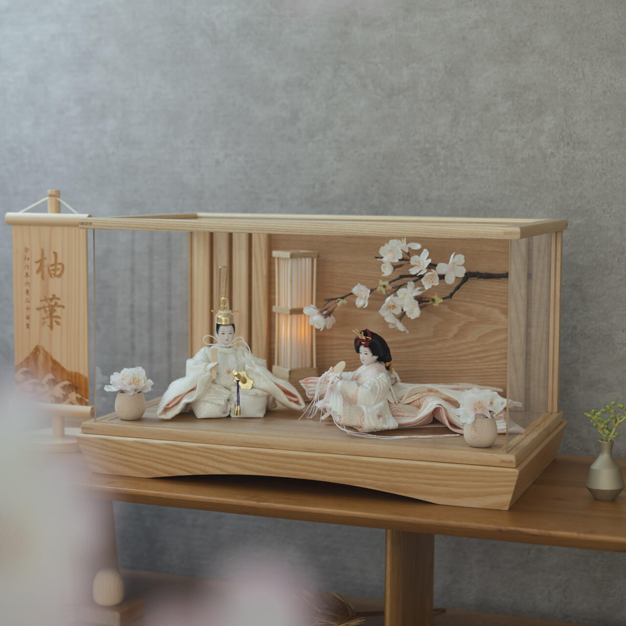 天然木の風合いを生かした木都の羽子板はひな人形と一緒に飾るのにぴったり。