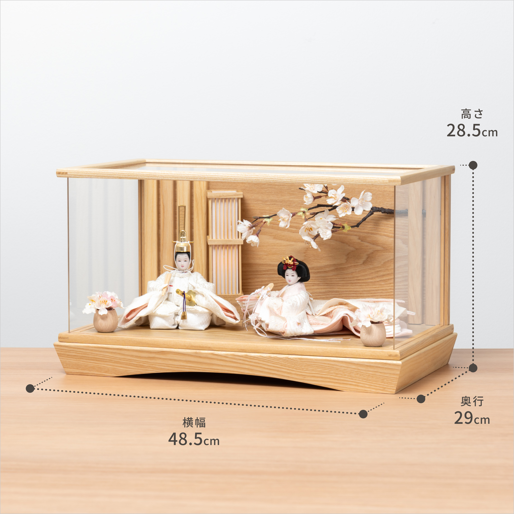 一般的なケース飾りの商品はコストや飾る手間を省くためにお人形の衣装を簡略化したり、設置箇所が固定されていますが、木都のお人形は伝統的な技法でお仕立てをし、親王台以外の設置箇所をあえて固定しておりません。