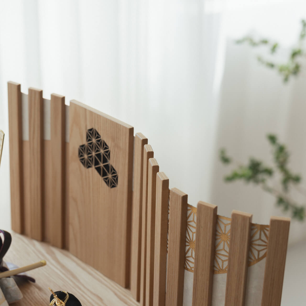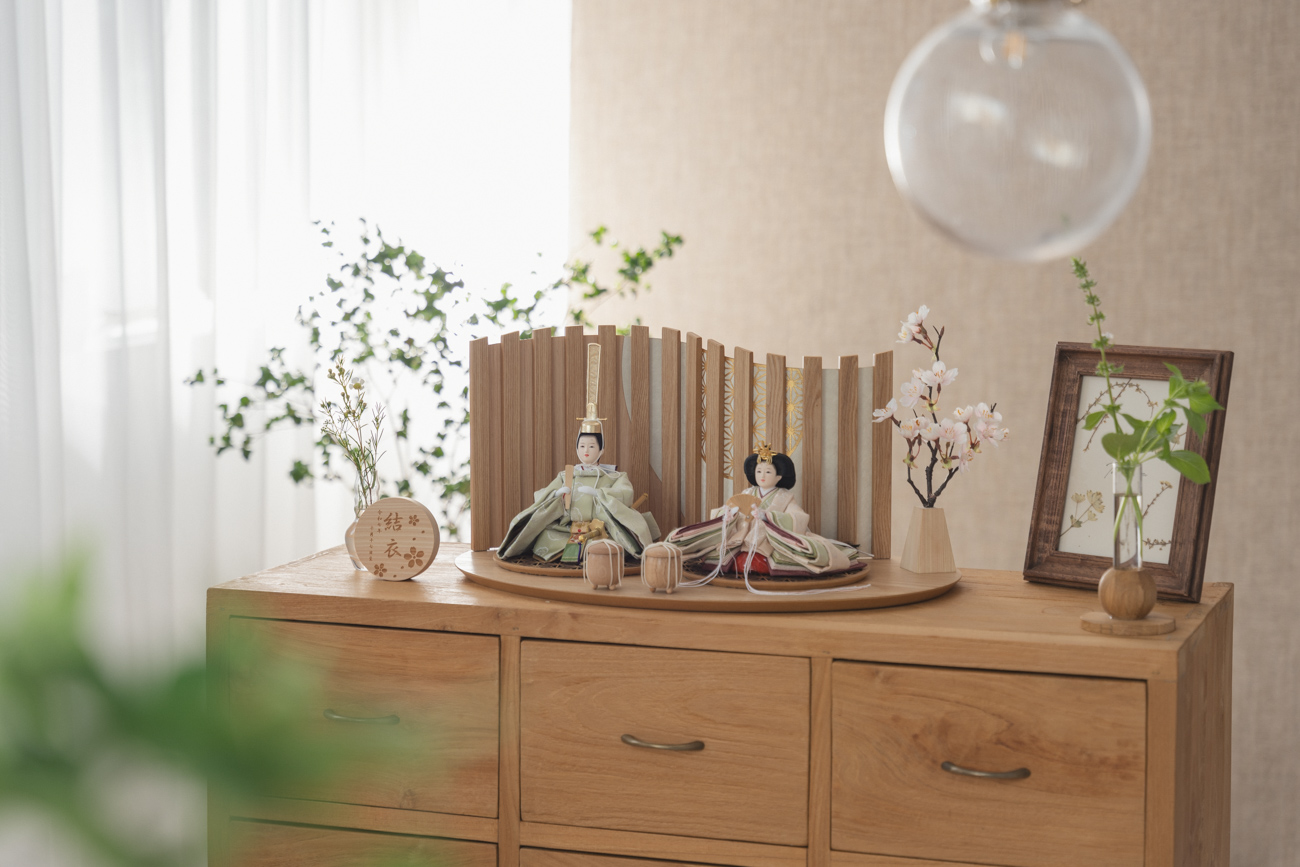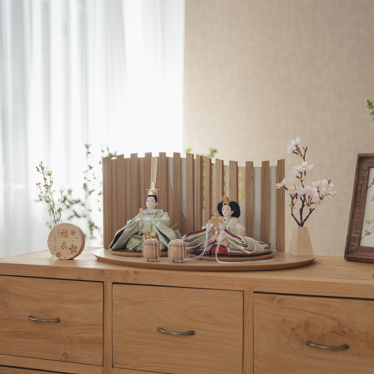 天然木の風合いを生かした木都の羽子板はひな人形と一緒に飾るのにぴったり。