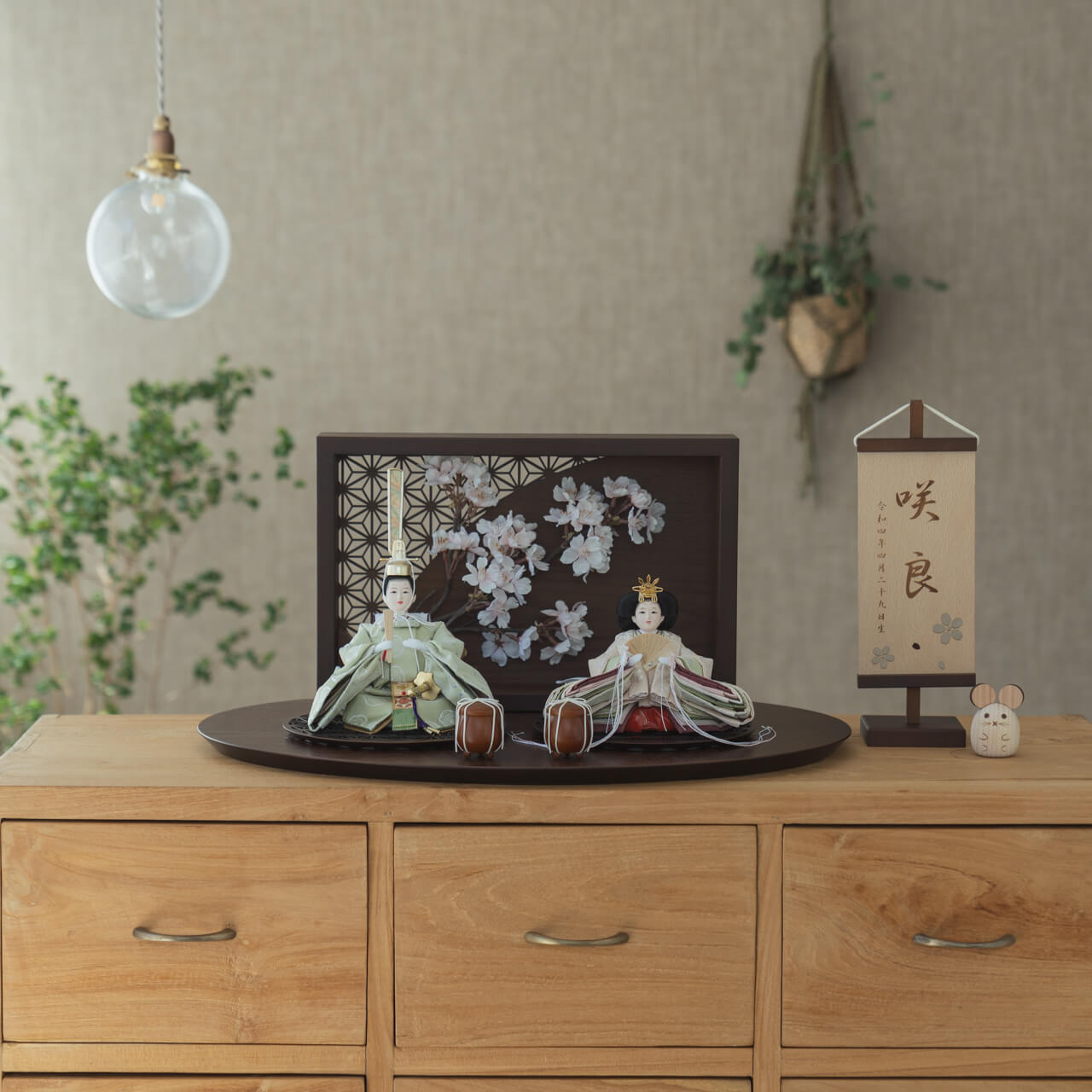天然木の風合いを生かした木都の羽子板はひな人形と一緒に飾るのにぴったり。