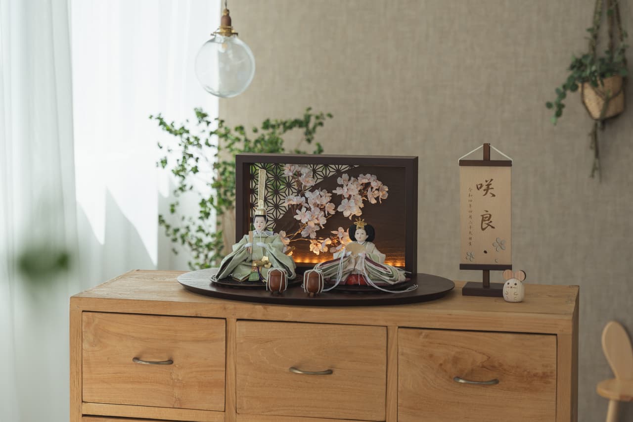精巧な凛として美しい佇まいを天然木の優しいぬくもりが包み込む・・・ まるで女の子の成長を温かく見守る家族の様に・・・ そんなコンセプトから生まれた、親しみやすく、お子様と一緒に飾れる「ことの雛人形」です。