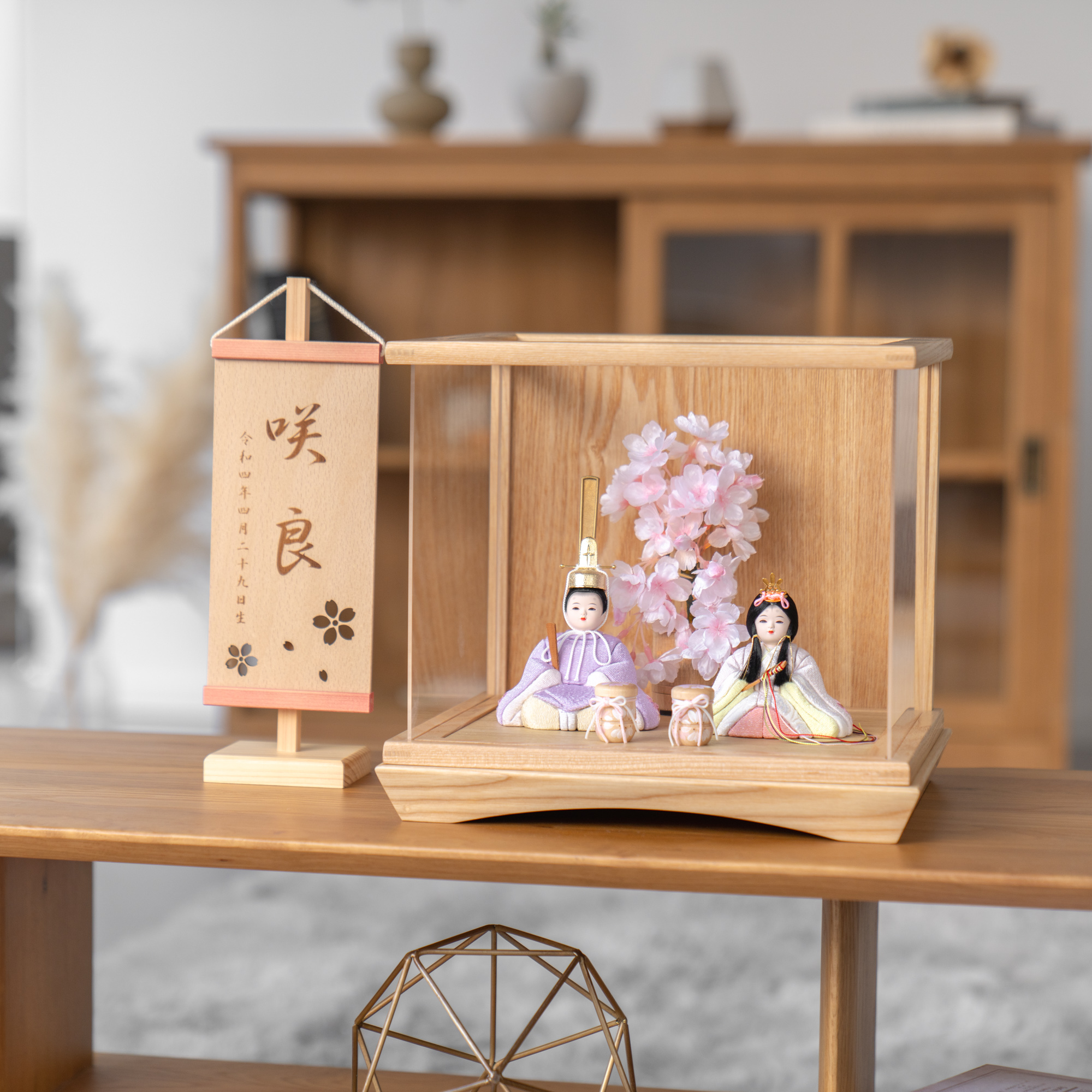 天然木の風合いを生かした木都の羽子板はひな人形と一緒に飾るのにぴったり。