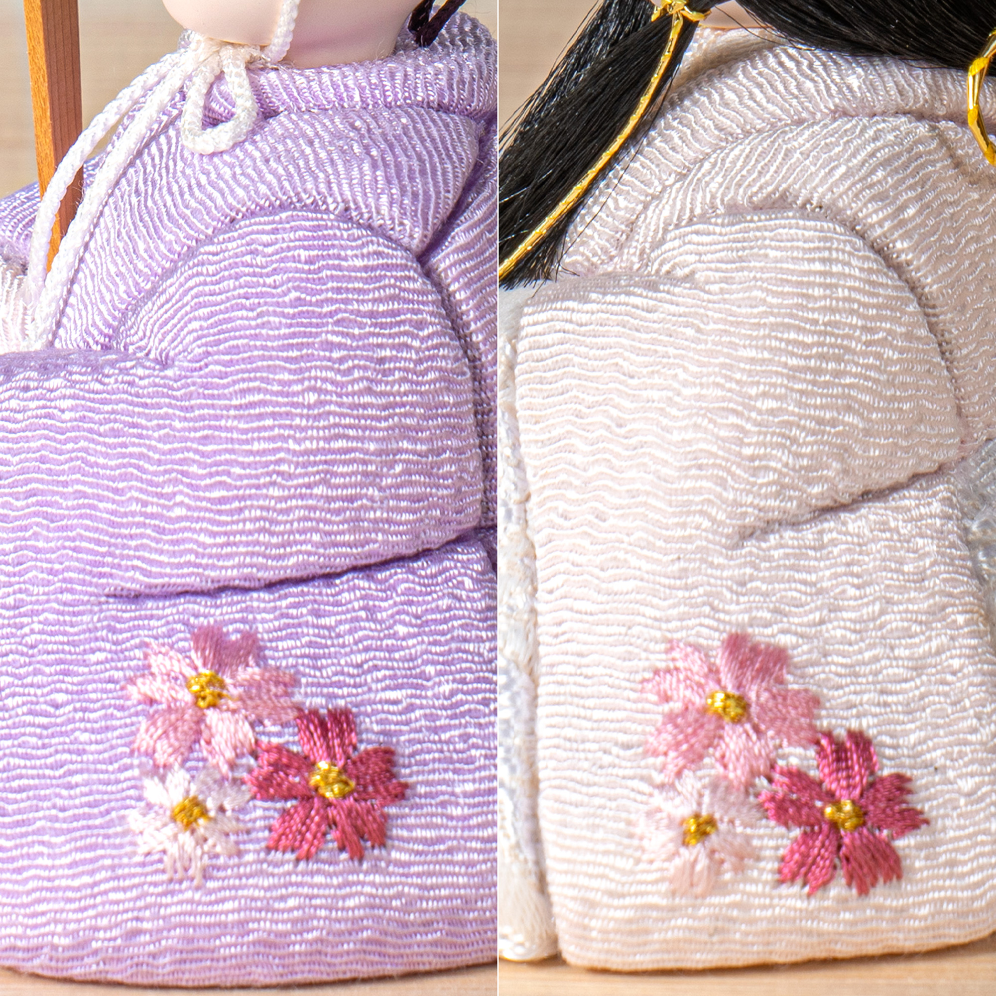 可愛らしいちりめんの裂地に桜の刺繍を施しています。