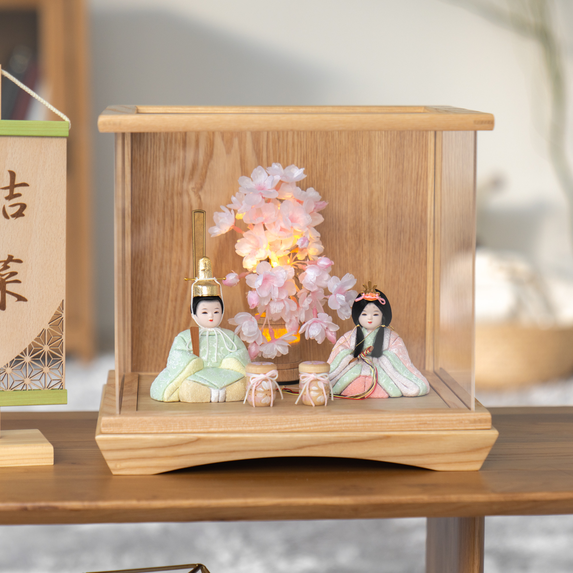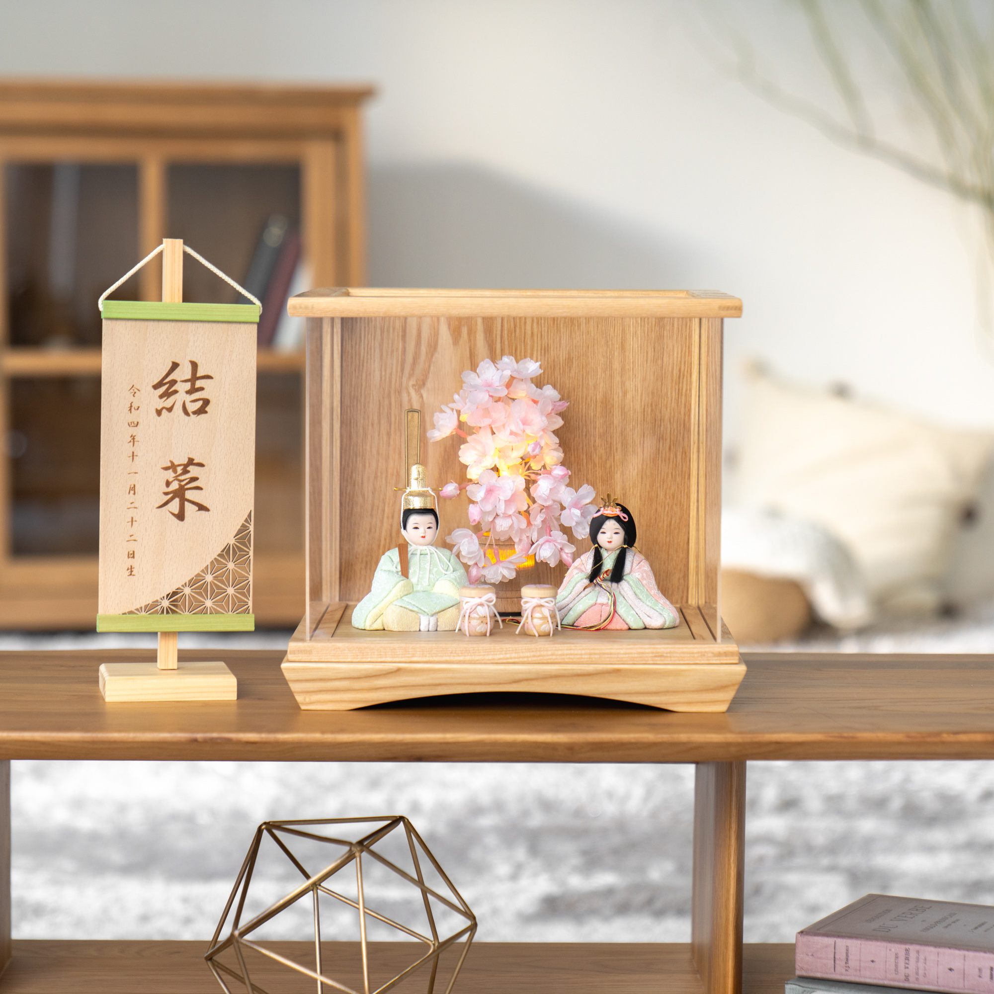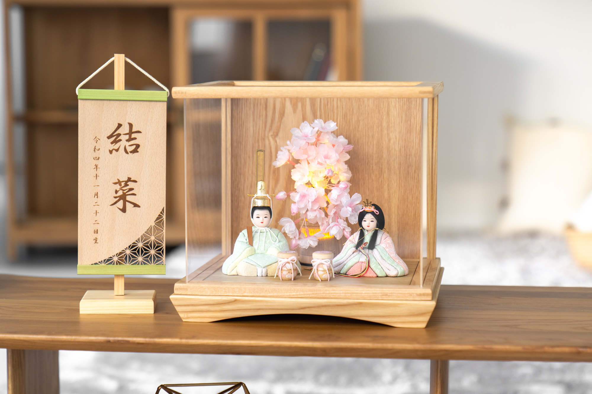 天然木の風合いを生かした木都の羽子板はひな人形と一緒に飾るのにぴったり。