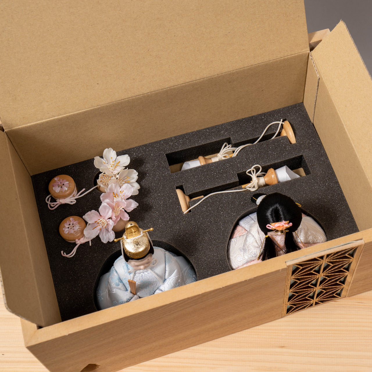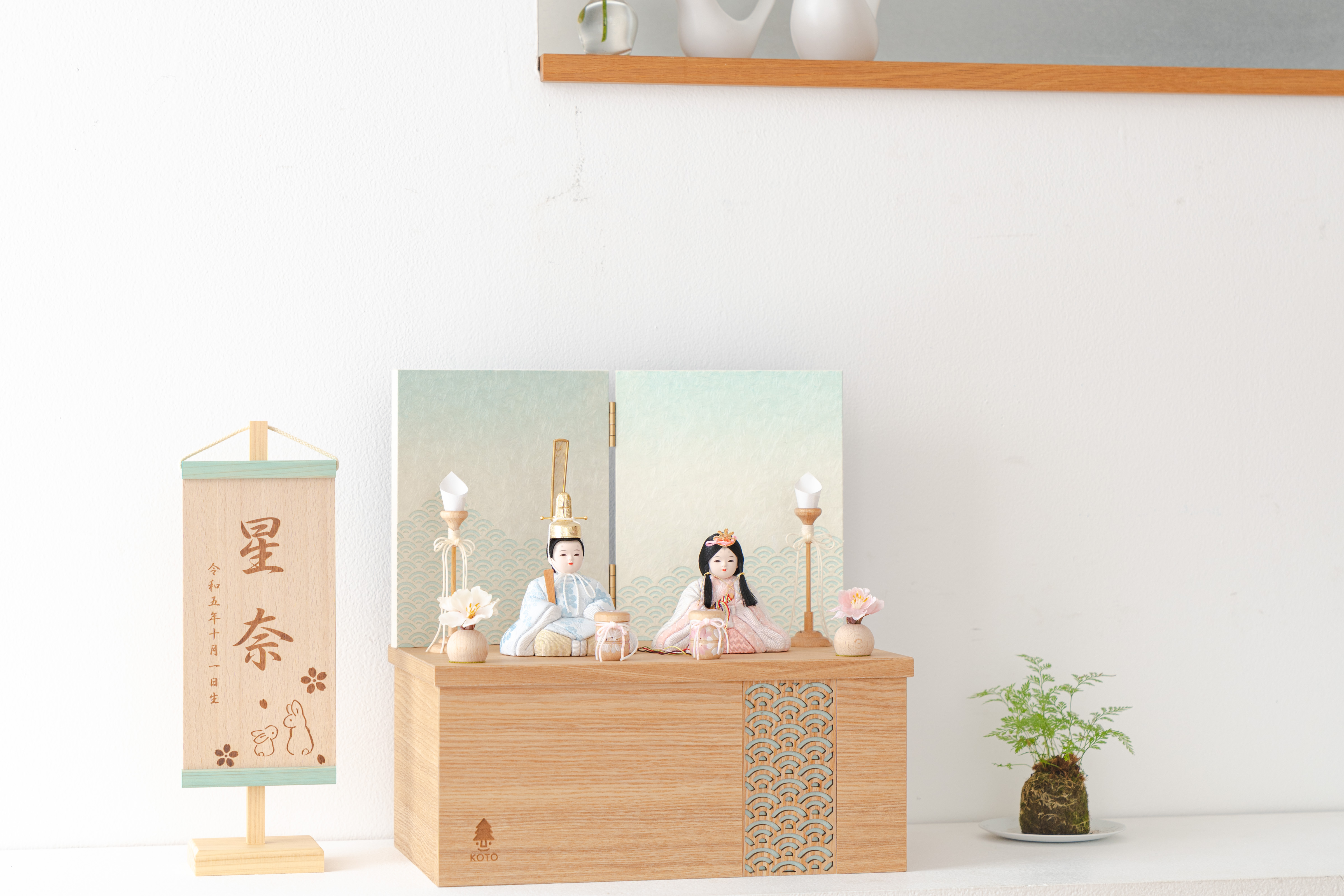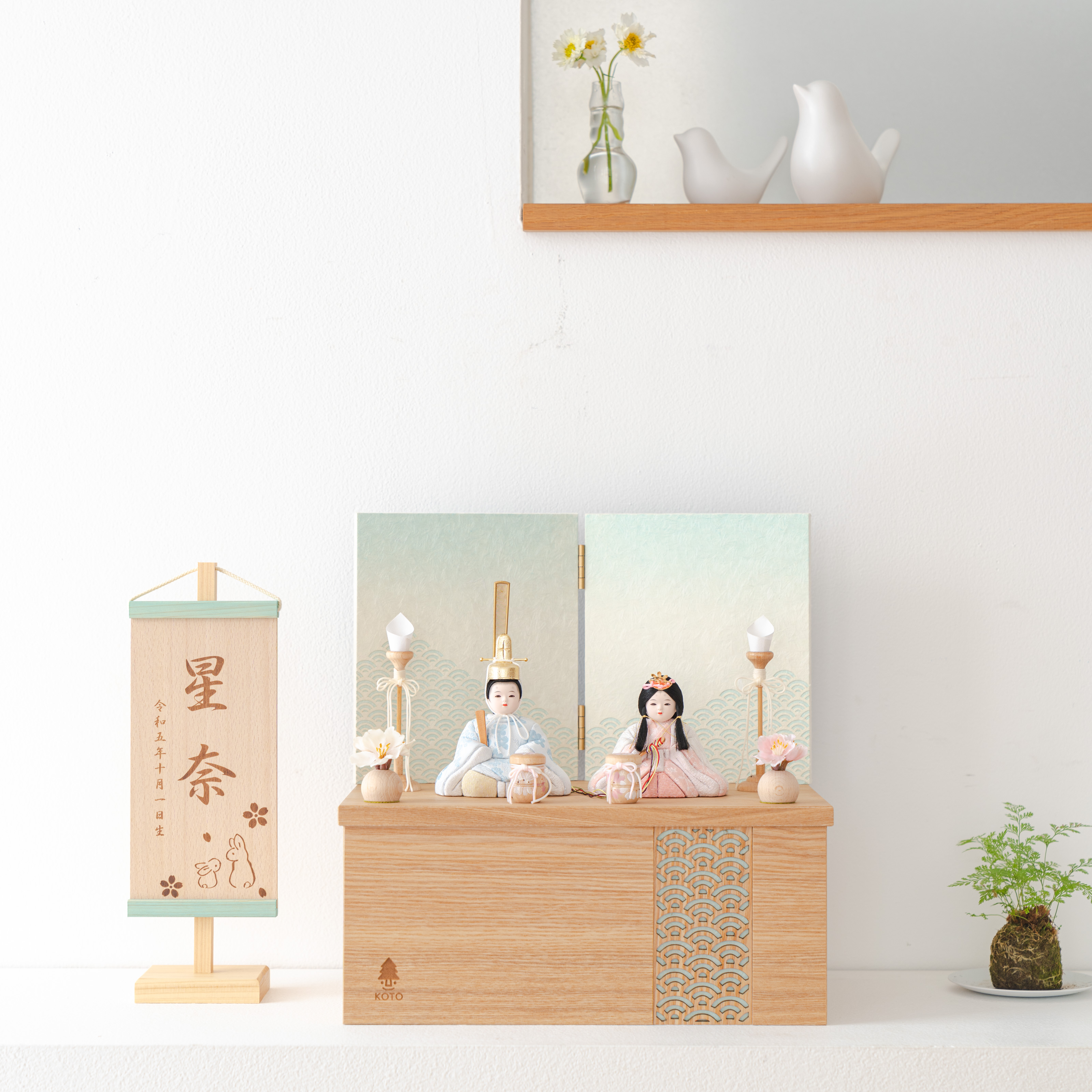 そんなコンセプトから生まれた、親しみやすく、お子様と一緒に飾れる「ことの木目込ひな」です。