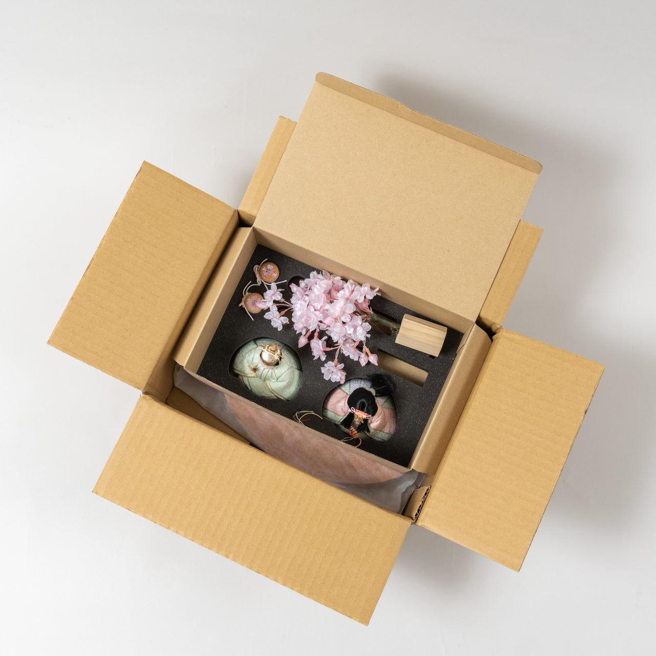 そんなコンセプトから生まれた、親しみやすく、お子様と一緒に飾れる「ことの木目込ひな」です。