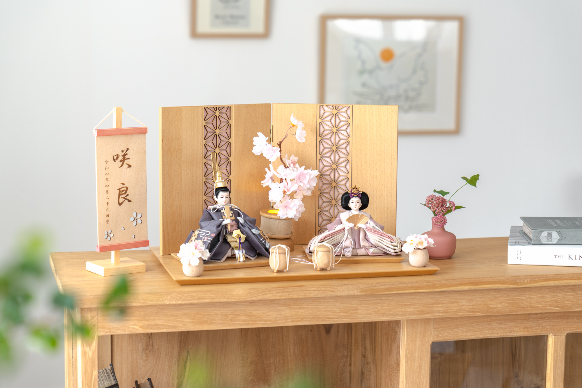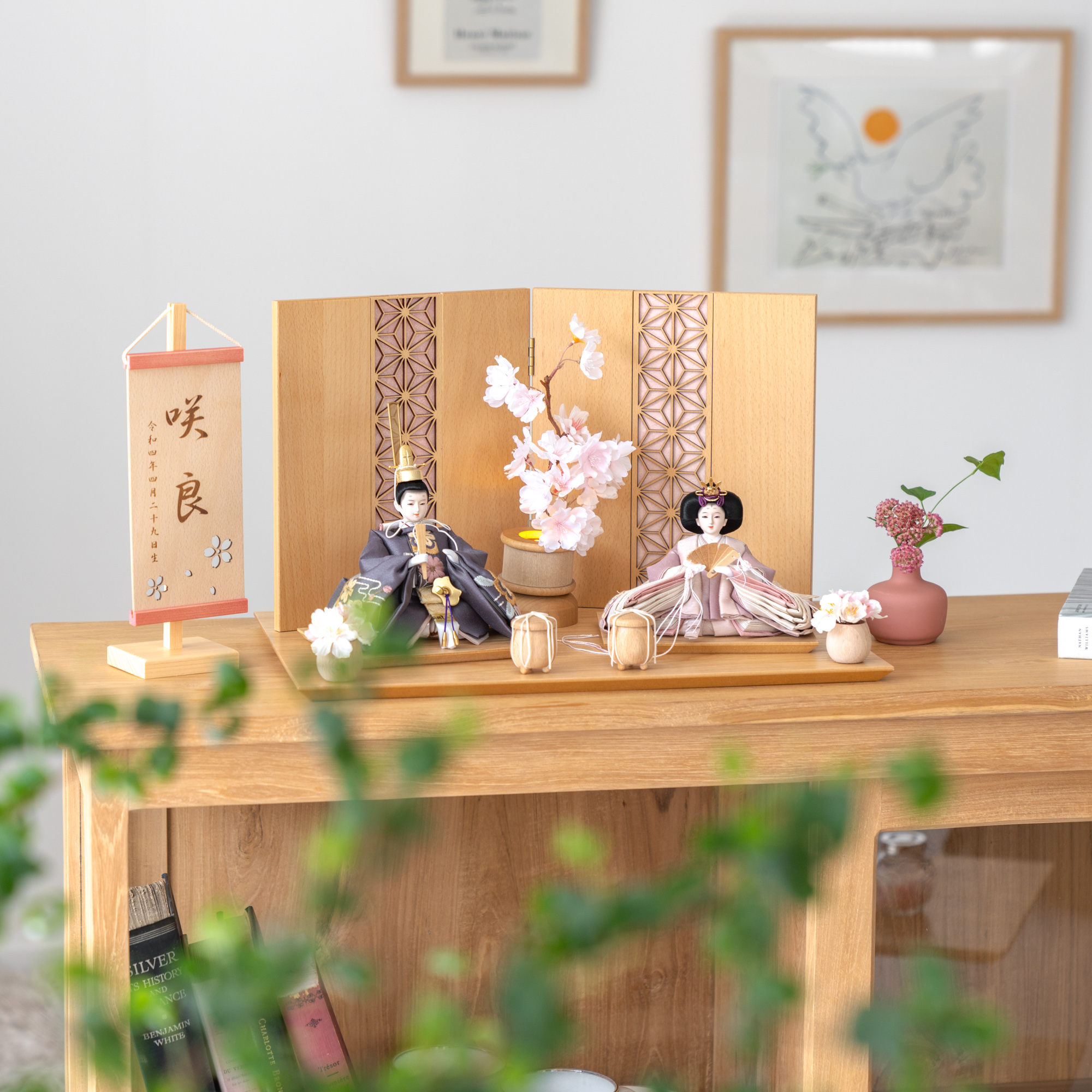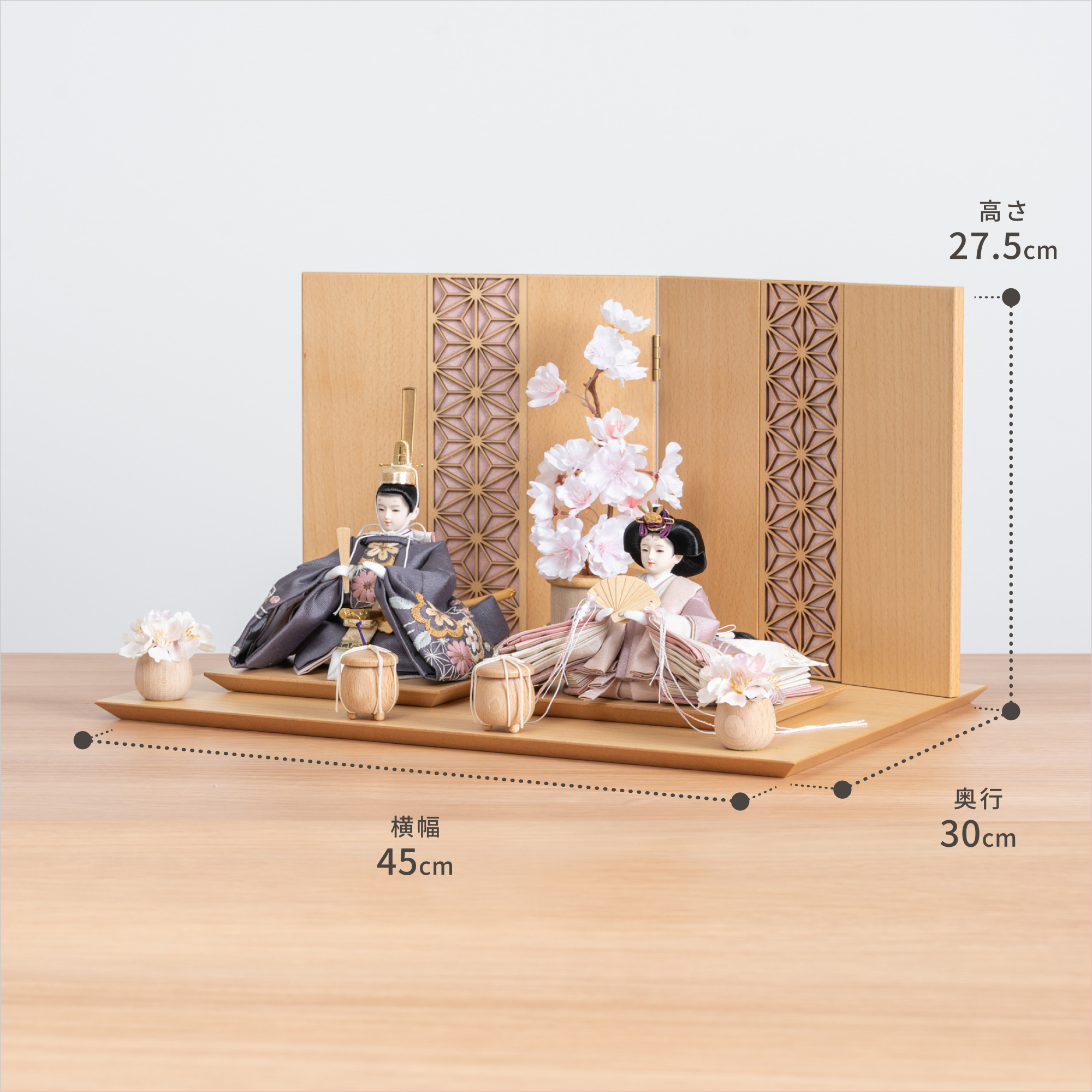 天然木の風合いを生かした木都の羽子板はひな人形と一緒に飾るのにぴったり。
