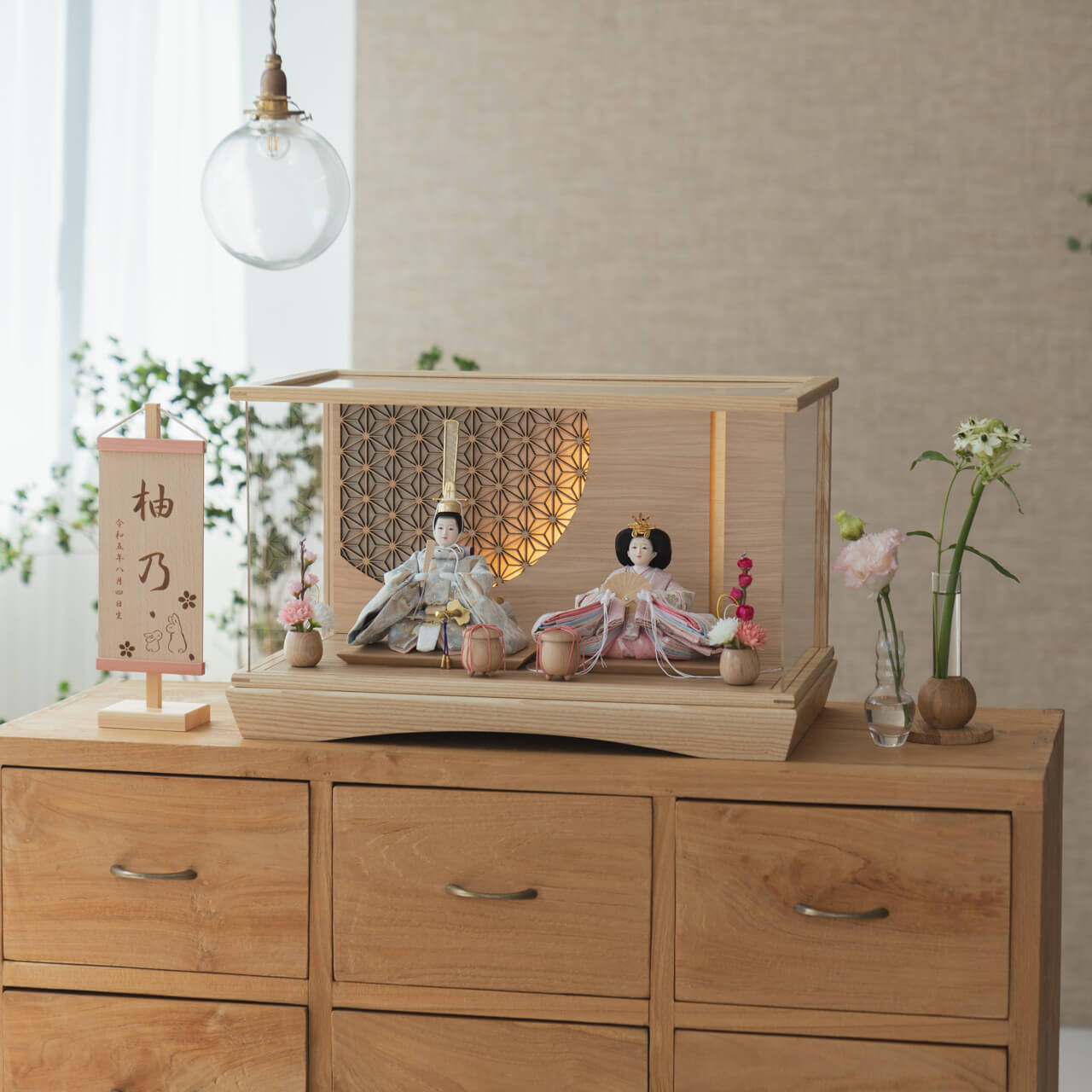 天然木の風合いを生かした木都の羽子板はひな人形と一緒に飾るのにぴったり。