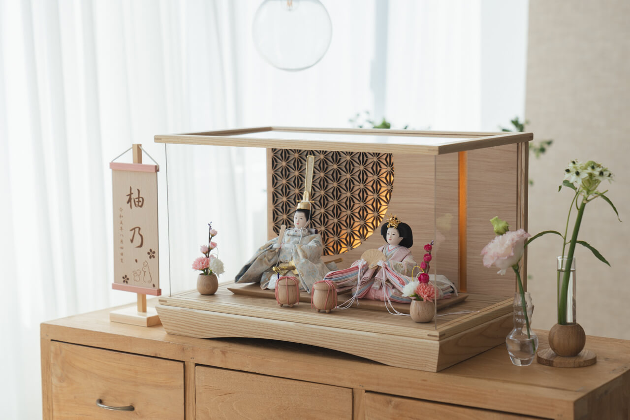 木都のケース飾りは、本物の素材や質感を感じながら親子で一緒に手に取って飾る体験をしてほしいから、あえて飾る手間を残しています。